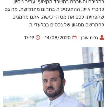 אייל גילאם יועץ הנדל"ן האישי שלכם בנתניה והסביבה - מבט כולל על החברה- City תיווך נד"לן ויזמות הינו משרד המתמחה בכל סוגי העסקאות , לרבות מכירה וקניית נכסים , מגרשים , השכרות, נכסים מסחריים , דירות מפרוייקטים יד ראשונה ועוד . אנו מציעים שרות ייחודי ואמין,המותאם לצורכי הלקוח בכל הקשור לנדל"ן,ואנו מתחייבים להוות אלטרנטיבה שונה בתחום תיווך הנדל"ן. אזורי הפעילות שלנו: נתניה והסביבה, קריית השרון ,עיר ימים , פולג . אנו מטפלים: במכירה והשכרה : דירות יד שנייה לצד פרויקטים חדשים,דירות יוקרה לצד בתים פרטיים,מגרשים,מבני תעשייה ומסחר. הכוונה לייעוץ משכנתאות,הכוונה לייעוץ משפטי. אייל גילאם city תיווך נדל"ן ויזמות התקשרו עוד היום לפגישת ייעוץ חינם עם יועץ הנדל"ן אייל גילאם