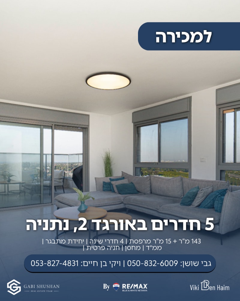 דירת מיני פנטהאוז מרשימה בנתניה, ברחוב אורגד 2, המציעה מרחב מחייה רחב של כ-143 מ"ר בתכנון מוקפד ונוח. הדירה כוללת 5 חדרים גדולים, מתוכם יחידת מתבגר ייחודית הממוקמת מיד בכניסה, וממ"ד לשקט נפשי. מרפסת שמש פרטית בגודל כ-15 מ"ר מזמינה אתכם ליהנות מנופים פתוחים לעמק חפר, עם מראה ים מרהיב עד חדרה והסביבה. המטבח המשודרג מצויד בנגרות מלאה, ומשולב במערכת מיזוג מרכזית עם דאמפרים המבטיחה נוחות בכל עונה. בבניין ארבעה מעליות, חדר כושר מודרני, חדר דיירים ופיר אשפה לנוחות מקסימלית. נוסף לכך, מחסן פרטי, חניה פרטית בשטח ומגרש חניה תת-קרקעי. המיקום מצוין, קרוב לפארק איינשטיין, מוסדות חינוך מובילים, וגישה מהירה ונוחה לכביש 2. זוהי ההזדמנות שלכם לרכוש נכס איכותי עם כל הפינוקים, באחד מהאזורים המבוקשים בנתניה. נכס שמשלב בין נוחות המגורים לנוחות התחבורה והפנאי – אידיאלי למשפחה שמחפשת איכות חיים ברמה אחרת. 🏡🌅