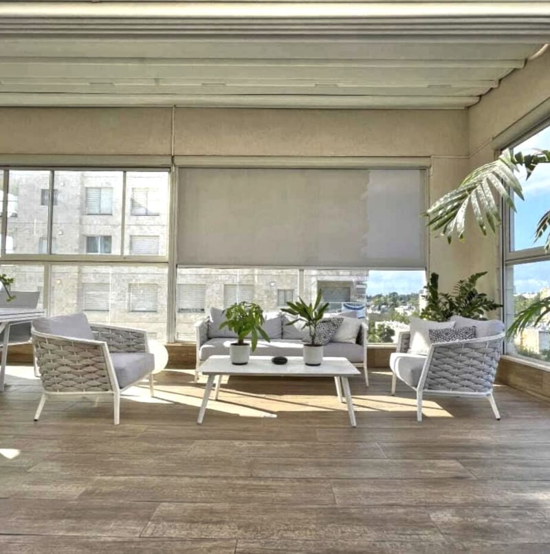 פנטהאוס מעוצב אדריכלית ומושקע ברמה גבוהה דירת 4 חדרים שטח 117 מ' + מרפסת היקפית 80 מ' קומה 10 2 חדרי רחצה +1 שרותי אורחים 2 חניות מחסן 10.5 מ' בית חכם ומושקע מטבח סמל