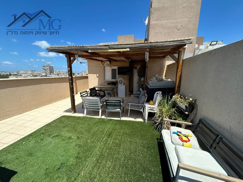 בס"ד דירת גג יפיפיה בקומות 5+6 בבניין בוטיק משנת 2000 באזור מרכזי בקרבת תוואי הרכבת הקלה .מוסדות חינוך ומרכזי קניות 3 שירותים ן 3 מקלחות (יחידת הורים חזית לרחוב שקט וחד סטרי כ"א דרום מערב וצפון בוצע שיפוץ בחדר שרותים ואמבט ארונות חדשים ממ"ד מרפסת שמש 5 מטר בנוסף בקומה 6 יחידת דיור מקלחת שירותים ויציאה למרפסת שמש 80 מטר מפנקת רשומה בטאבו 4 מזגנים עליים בחדרים ומזגן מרכזי נוסף בהצלחה