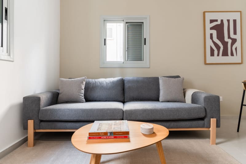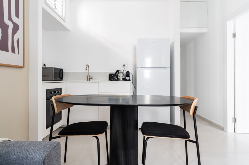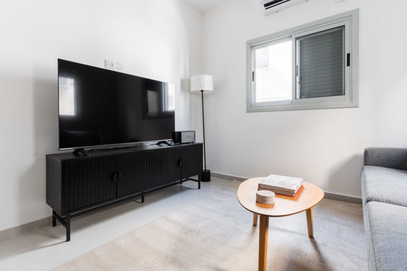 Show up and start living from day one in Tel Aviv with this sophisticated one bedroom Blueground apartment. You’ll love coming home to this thoughtfully furnished, beautifully designed, and fully equipped Tel Aviv home with stunning balcony views over the city. (ID #TLV80) Rates vary depending on the duration of stay, season, and other parameters. For exact pricing and additional pricing components, please visit our website and enter your desired move-in and move-out dates. The rate is applicable when billed upfront; it can be higher if billed in multiple payments. Were you looking for an unfurnished lease? Try Blueground instead and upgrade from unfurnished to furnished living: Furnished at rates comparable to unfurnished No setup or furniture costs - save thousands Move-in ready - save time, just bring your suitcase Designed with you in mind As with any Blueground apartment, you’ll find a thoughtfully designed space complete with beautiful furniture and a fully equipped kitchen in this one bedroom property. And, thanks to our superior quality mattresses, luxury linens, and towels, you can relax knowing you’ll always feel comfortably at home. When you’re ready for some fun, you can take in the Tel Aviv vibes or bring the entertainment to you with the premium wireless speaker or smart TV. This apartment also offers in-apartment laundry. Sleeping arrangements Double Bed, 55in/140cm Amenities Building amenities unique to this one bedroom apartment include an on-site: Dryer Elevator Washing machine Pets allowed Arrival and ongoing support Full Maintenance and Technical Support / cleaning requests at a click of a button. Other things to note Pet fees may apply. The displayed price excludes VAT. Israeli citizens must add 18% VAT, which also applies to reservations without verified tourist status (B2/B3/B4 voucher).