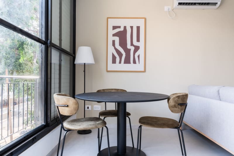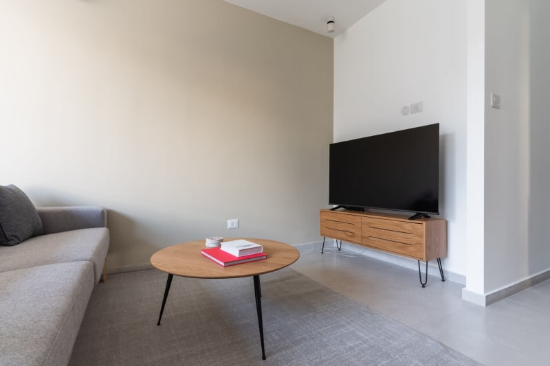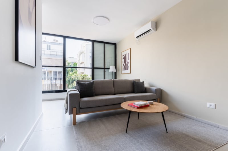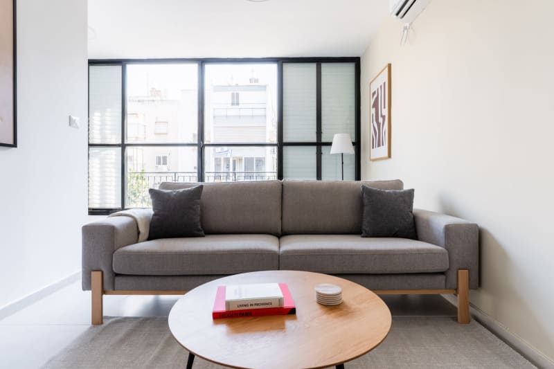 Discover the best of Tel Aviv, with this two bedroom apartment in Tel Aviv with views over the city. It’ll be easy to simply show up and start living in this airy furnished apartment with its fully equipped kitchen, cozy living room, and our dedicated, on-the-ground support. (ID #TLV81) Rates vary depending on the duration of stay, season, and other parameters. For exact pricing and additional pricing components, please visit our website and enter your desired move-in and move-out dates. The rate is applicable when billed upfront; it can be higher if billed in multiple payments. Were you looking for an unfurnished lease? Try Blueground instead and upgrade from unfurnished to furnished living: Furnished at rates comparable to unfurnished No setup or furniture costs - save thousands Move-in ready - save time, just bring your suitcase Designed with you in mind Thoughtfully designed with bespoke finishes, modern furnishings, and a fully equipped kitchen, you’ll enjoy that “I’m home” feeling with this apartment. Whether you’re lounging in your lovely living room streaming the latest and greatest entertainment on the smart TV or premium wireless speaker, or getting some well-earned rest on the superior quality mattress with luxury linens, you’ll fall in love with everything this Tel Aviv apartment has to offer. Sleeping arrangements Single Bed, 35.4in/90cm Queen Bed, 63in/160cm Amenities Building amenities unique to this two bedroom apartment include an on-site: Elevator Washing machine Pets allowed Arrival and ongoing support Full Maintenance and Technical Support / cleaning requests at a click of a button. Other things to note Pets are welcome, though weight limits and breed restrictions apply and may incur fees. The displayed price excludes VAT. Israeli citizens must add 18% VAT, which also applies to reservations without verified tourist status (B2/B3/B4 voucher).