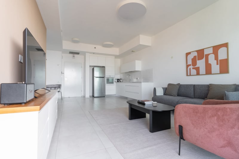 You’ll love this stylish Tel Aviv furnished two bedroom apartment with its modern decor, fully equipped kitchen, and cheery living room . Ideally located, you’re close to all the best that Tel Aviv has to offer! (ID #TLV41) Rates vary depending on the duration of stay, season, and other parameters. For exact pricing and additional pricing components, please visit our website and enter your desired move-in and move-out dates. The rate is applicable when billed upfront; it can be higher if billed in multiple payments. Were you looking for an unfurnished lease? Try Blueground instead and upgrade from unfurnished to furnished living: Furnished at rates comparable to unfurnished No setup or furniture costs - save thousands Move-in ready - save time, just bring your suitcase Designed with you in mind In this apartment, you’ll find a thoughtfully designed space complete with beautiful furniture and a fully equipped kitchen in this two bedroom property. And, thanks to our superior quality mattresses, luxury linens, and towels, you can relax knowing you’ll always feel comfortably at home. When you’re ready for some fun, you can take in the Tel Aviv vibes or bring the entertainment to you with the premium wireless speaker or smart TV. This apartment also offers in-apartment laundry. Sleeping arrangements Queen Bed, 63in/160cm Queen Bed, 63in/160cm Amenities Building amenities unique to this two bedroom apartment include an on-site: Doorman Dryer Elevator Washing machine Parking Arrival and ongoing support Full Maintenance and Technical Support / cleaning requests at a click of a button. Other things to note This apartment has flexible lease options, allowing you to book it for one month, a year, or more. Parking is offered based on availability and is subject to a fee. The displayed price excludes VAT. Israeli citizens must add 18% VAT, which also applies to reservations without verified tourist status (B2/B3/B4 voucher).