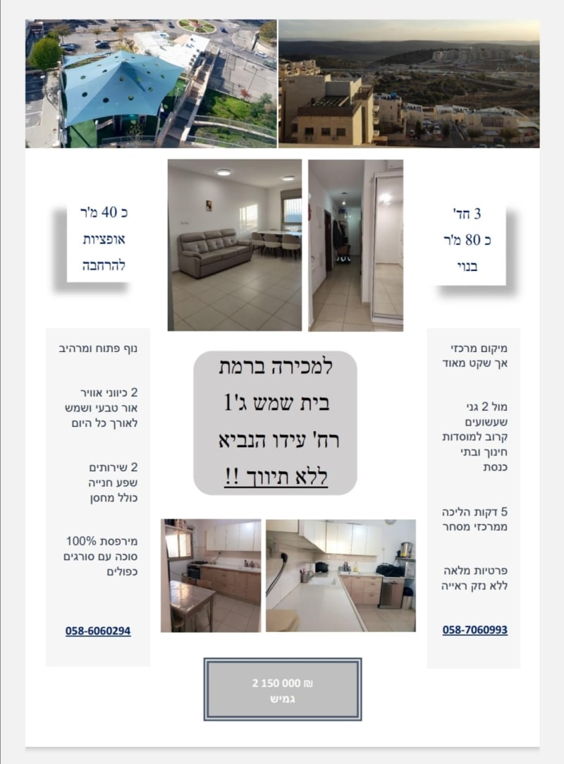 מידע נוסף אודות דירה בעידו הנביא 4 בית שמש