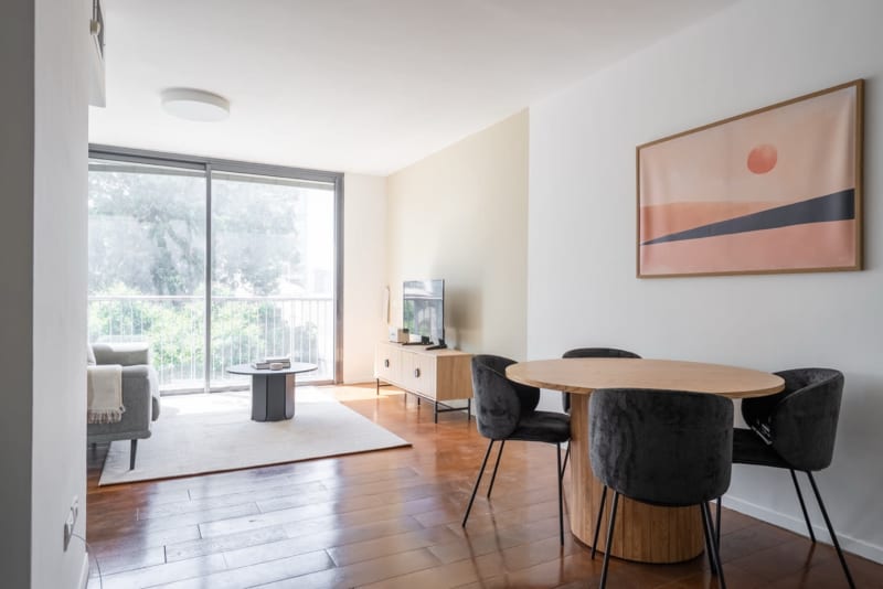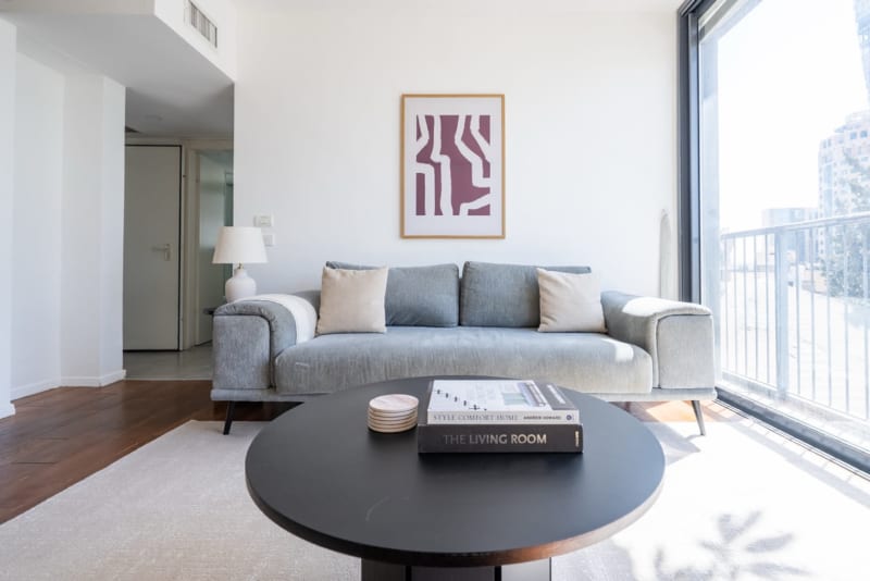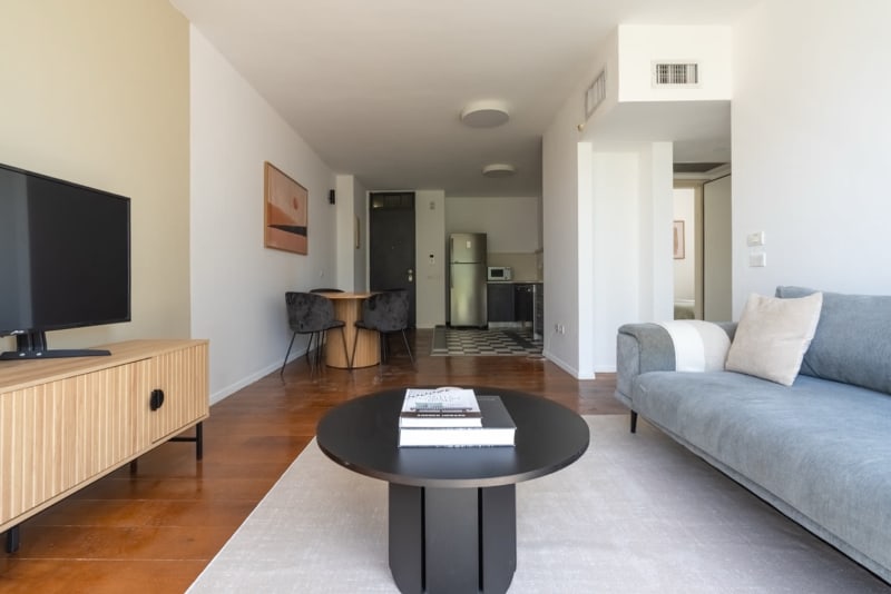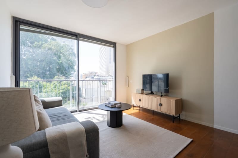 Show up and start living from day one in Tel Aviv with this spacious two bedroom apartment. You’ll love coming home to this thoughtfully furnished, beautifully designed, and fully equipped Lev HaIr home with stunning views over the city. (ID #TLV97) Rates vary depending on the duration of stay, season, and other parameters. For exact pricing and additional pricing components, please visit our website and enter your desired move-in and move-out dates. The rate is applicable when billed upfront; it can be higher if billed in multiple payments. Were you looking for an unfurnished lease? Try Blueground instead and upgrade from unfurnished to furnished living: Furnished at rates comparable to unfurnished No setup or furniture costs - save thousands Move-in ready - save time, just bring your suitcase Designed with you in mind Gorgeous furniture, fully equipped kitchen, smart TV, and a premium wireless speaker are just a few of the amenities you’ll find inside this two bedroom apartment. Ideally located in Tel Aviv, you’ll find a lot to love outside as well. When you’re ready to relax, you’ll be happy to discover every bedroom comes with superior quality mattresses. We handle everything so you can simply show up and start living. Sleeping arrangements Queen Bed, 63in/160cm Queen Bed, 63in/160cm Amenities Building amenities unique to this two bedroom apartment include an on-site: Elevator Washing machine Parking Arrival and ongoing support Full Maintenance and Technical Support / cleaning requests at a click of a button. Other things to note This apartment has flexible lease options, allowing you to book it for one month, a year, or more. This apartment can be booked for short term stays, with the option to extend to one month or longer. Parking is offered based on availability and is subject to a fee. The displayed price excludes VAT. Israeli citizens must add 18% VAT, which also applies to reservations without verified tourist status (B2/B3/B4 voucher).