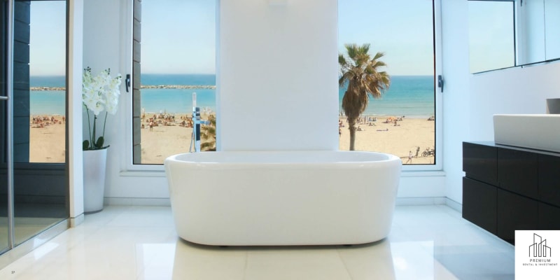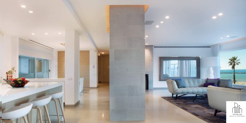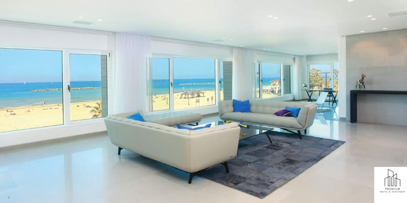 5 rooms 3 Masters suites 3rd floor 520 sq meters Stunning apartment in tower by the sea the apartment is 300 square meters + 220 square meters garden with jacuzzi huge bedrooms high-end finish with high standards 2 parking spaces building amenities: 24/7 security, gym, swimming pool fully furnished