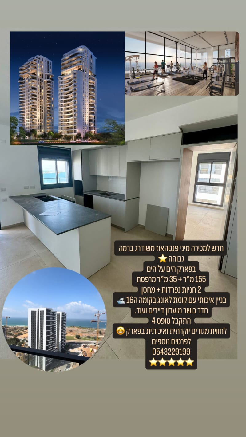 מיני פנטהאוז משודרג חדשששש!!! מרפסת גדולה חזיתית לים ולפארק קומת לאונג וחדר כושר בקומה ה16 לדיירי הבניין בלבד ! פרוייקט איכותי כמעט ואין דירות להשכרה כל הבעלים גרים בבניין. 2 חניות ומחסן