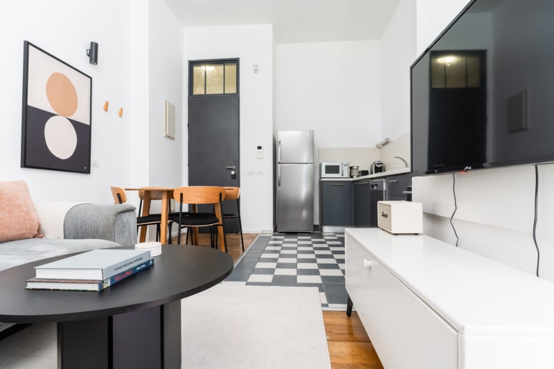 Discover the best of Tel Aviv, with this three bedroom apartment in Lev HaIr with views over the city. It’ll be easy to simply show up and start living in this beautifully furnished apartment with its fully equipped kitchen, charming living room, and our dedicated, on-the-ground support. (ID #TLV94) Rates vary depending on the duration of stay, season, and other parameters. For exact pricing and additional pricing components, please visit our website and enter your desired move-in and move-out dates. The rate is applicable when billed upfront; it can be higher if billed in multiple payments. Were you looking for an unfurnished lease? Try Blueground instead and upgrade from unfurnished to furnished living: Furnished at rates comparable to unfurnished No setup or furniture costs - save thousands Move-in ready - save time, just bring your suitcase Designed with you in mind Gorgeous furniture, fully equipped kitchen, smart TV, and a premium wireless speaker are just a few of the amenities you’ll find inside this three bedroom apartment. Ideally located in Tel Aviv, you’ll find a lot to love outside as well. When you’re ready to relax, you’ll be happy to discover every bedroom comes with superior quality mattresses. We handle everything so you can simply show up and start living. Sleeping arrangements Queen Bed, 63in/160cm Queen Bed, 63in/160cm Queen Bed, 63in/160cm Amenities Building amenities unique to this three bedroom apartment include an on-site: Elevator Washing machine Parking Arrival and ongoing support Full Maintenance and Technical Support / cleaning requests at a click of a button. Other things to note Parking is offered based on availability and is subject to a fee. The displayed price excludes VAT. Israeli citizens must add 18% VAT, which also applies to reservations without verified tourist status (B2/B3/B4 voucher).
