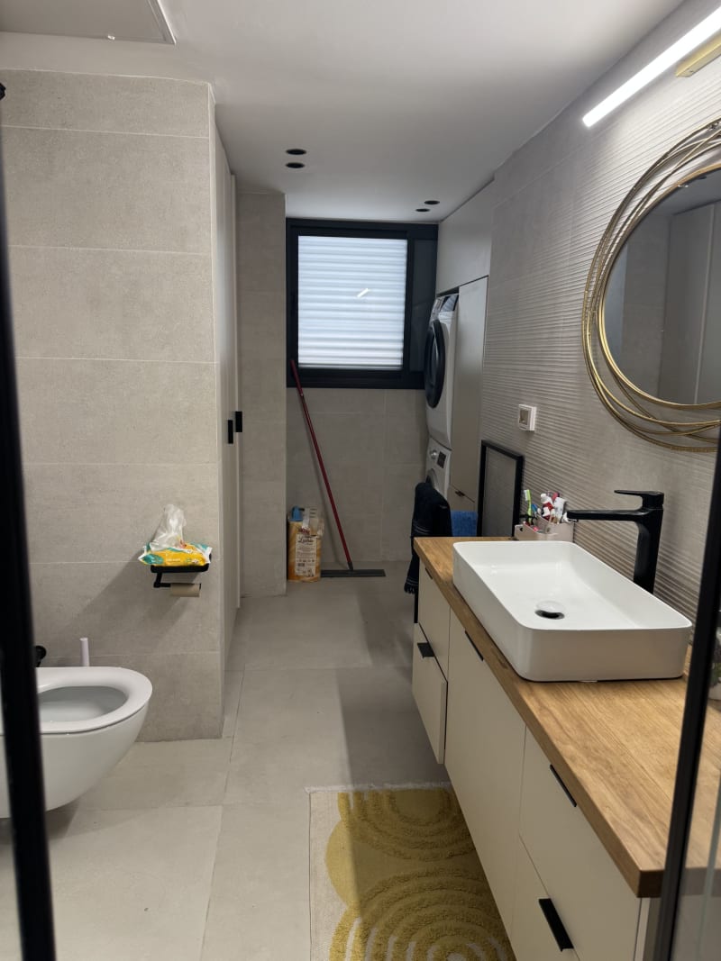 ללא תיווך !!! דירת 5 חדרים + משרד קטן משופצת מהיסוד ע״י אדריכלית בגימור גבוהה קומה ראשונה, מרפסת, ממד, מחסן, חניה. שני שירותים+ שתי מקלחות .