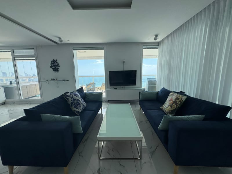חדש להשכרה במגדל דוד המלך(מגדל בריגה) עם נוף פנורמי לים מכל חלון דירה מושקעת מאוד עם ספא בבית ! הכולל ג׳קוזי וסאונה בתוך הדירה ! קומה 23 6 חדרים 5 שירותים 4 חדרי רחצה 3 חדרי מאסטר 225 מ״ר + 50 מ״ר מרפסת עם נוף מדהים לים 2 חניות מרוהט מלא מחיר: 16,000שח