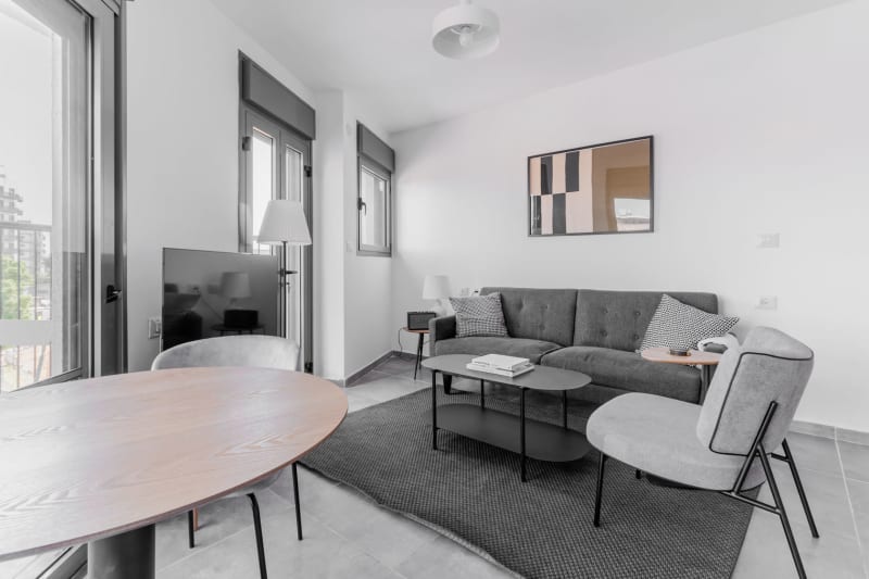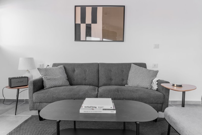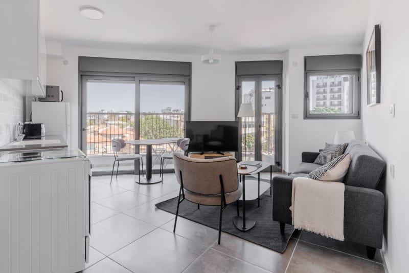 Discover the best of Tel Aviv, with this one bedroom apartment in Florentin with balcony views over the city. It’ll be easy to simply show up and start living in this lavishly furnished apartment with its fully equipped kitchen, charming living room, and our dedicated, on-the-ground support. (ID #TLV4) Rates vary depending on the duration of stay, season, and other parameters. For exact pricing and additional pricing components, please visit our website and enter your desired move-in and move-out dates. The rate is applicable when billed upfront; it can be higher if billed in multiple payments. Were you looking for an unfurnished lease? Try Blueground instead and upgrade from unfurnished to furnished living: Furnished at rates comparable to unfurnished No setup or furniture costs - save thousands Move-in ready - save time, just bring your suitcase Designed with you in mind Gorgeous furniture, fully equipped kitchen, smart TV, and a premium wireless speaker are just a few of the amenities you’ll find inside this one bedroom apartment. Ideally located in Tel Aviv, you’ll find a lot to love outside as well. When you’re ready to relax, you’ll be happy to discover every bedroom comes with superior quality mattresses. We handle everything so you can simply show up and start living. Sleeping arrangements Queen Bed, 63in/160cm Amenities Building amenities unique to this one bedroom apartment include an on-site: Elevator Washing machine Pets allowed Arrival and ongoing support Full Maintenance and Technical Support / cleaning requests at a click of a button. Other things to note Pets are welcome, though weight limits and breed restrictions apply and may incur fees. The displayed price excludes VAT. Israeli citizens must add 18% VAT, which also applies to reservations without verified tourist status (B2/B3/B4 voucher).