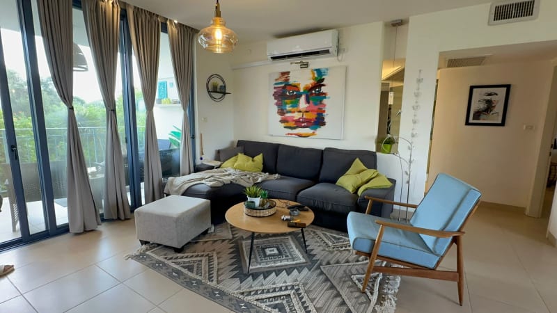 דירת מעצבים יפייפיה עם 2 חדרי שינה מרווחים + 2 חדרי אמבטיה + סלון וחדר אוכל גדולים ומוארים + מרפסת + חצק יפה + נוף פתוח ירוק. מיקום הכי טוב בקיסריה. מיקום בכי טוב בקיסריה הליכה קצרה מהים, ביה"ס , בית הכנסת, קאנטרי ומרכז קיסריה.