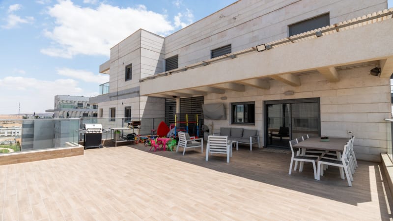 מיני פנטהאוז ייחודי ומושלם!!! 114 מטר נטו 4 חדרים 90 מ"ר מרפסת ענקית עם נוף פתוח ללא קירות משותפים פינת אוכל מוגדרת מטבח קלאסי ונקי מנגר פרטי, כולל אי מפנק עם מקומות איחסון יחידת הורים כולל שירוקלחת מזגן בכל חדר ריצוף חוץ דמוי דק, פרגולה גדולה מקורה מחסן ליד החניה (2 חניות) חובה להגיע להתרשם !!!! לפרטים נוספים וסיור חייגו