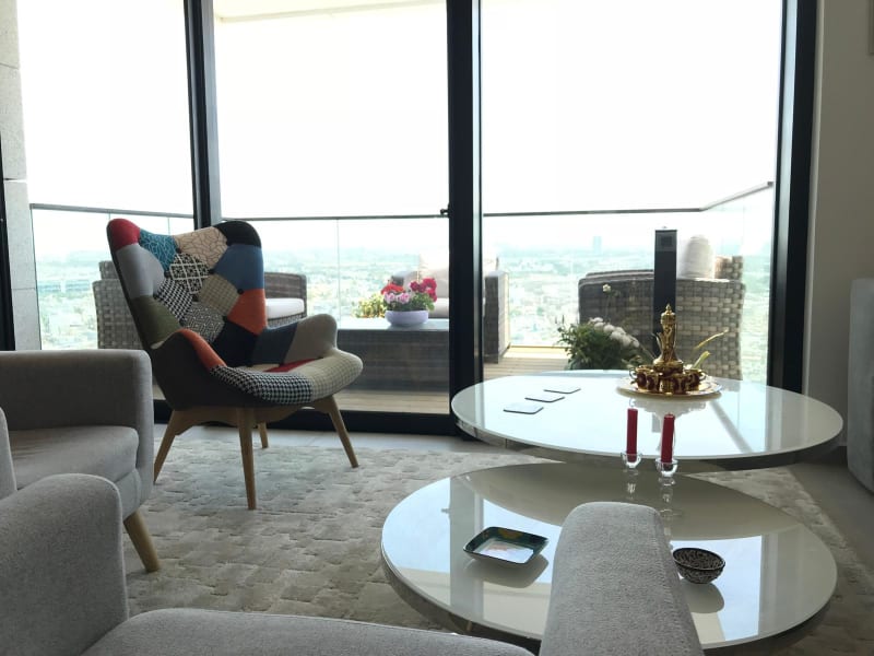 דירה למכירה 4.5 חדרים בפינס תל אביב יפו בעלת שטח 126, מרפסות שמש: 1, שירותים: 2, אמבטיות: 2, כיווני אוויר: מזרח, דרום, חניות: 2, קומה: 26, מעליות: 3, כיווני אוויר: מזרח, דרום, תוספות:: מיזוג, יחידת הורים, משופצת, ממ״ד, מחסן, גישה לנכים, פיר אשפה, חדר כושר, חדר עגלות.