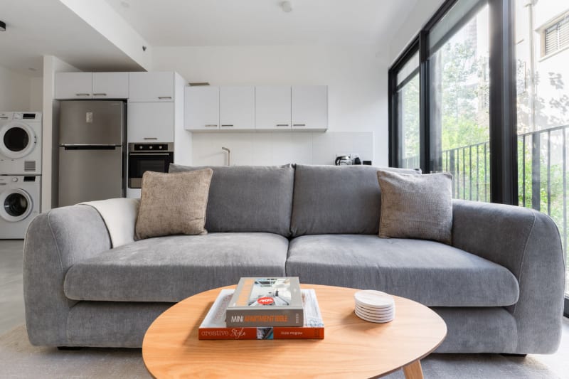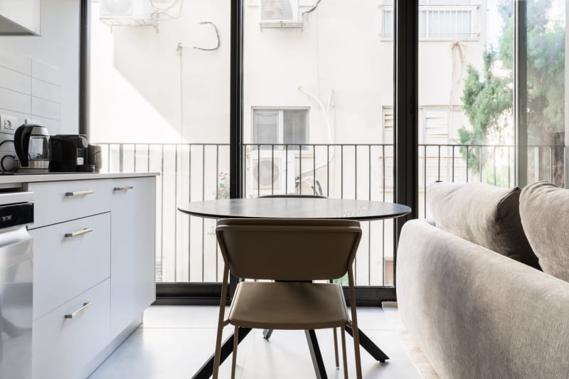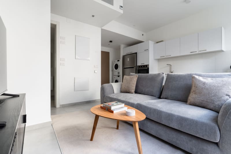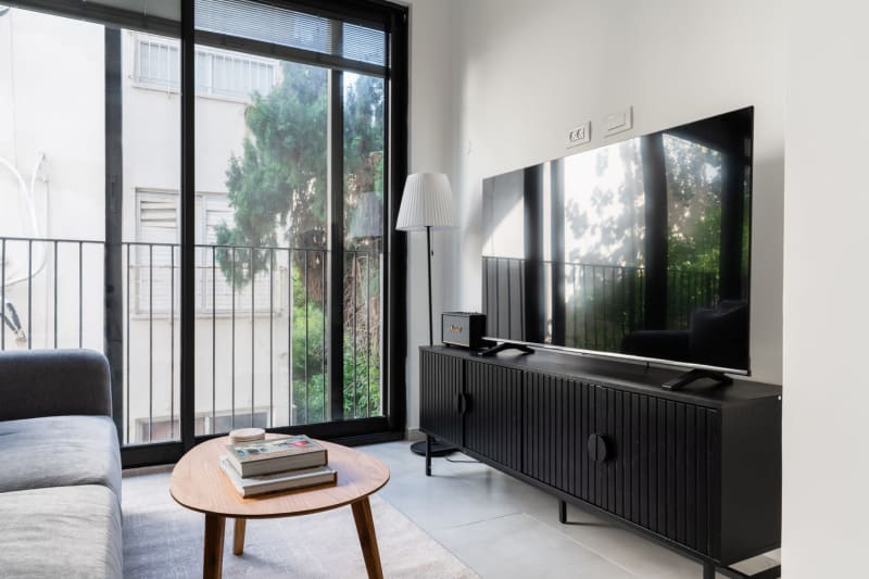 Rates vary depending on the duration of stay, season, and other parameters. For exact pricing and additional pricing components, please visit our website and enter your desired move-in and move-out dates. The rate is applicable when billed upfront; it can be higher if billed in multiple payments. Discover the best of Tel Aviv, with this one bedroom apartment in Tel Aviv with views over the city. It’ll be easy to simply show up and start living in this elegantly furnished apartment with its fully equipped kitchen, spacious living room, and our dedicated, on-the-ground support. (ID #TLV82) Were you looking for an unfurnished lease? Try Blueground instead and upgrade from unfurnished to furnished living: Furnished at rates comparable to unfurnished No setup or furniture costs - save thousands Move-in ready - save time, just bring your suitcase Designed with you in mind Gorgeous furniture, fully equipped kitchen, smart TV, and a premium wireless speaker are just a few of the amenities you’ll find inside this one bedroom apartment. Ideally located in Tel Aviv, you’ll find a lot to love outside as well. When you’re ready to relax, you’ll be happy to discover every bedroom comes with superior quality mattresses. We handle everything so you can simply show up and start living. Sleeping arrangements Queen Bed, 63in/160cm Amenities Building amenities unique to this one bedroom apartment include an on-site: Elevator Washing machine Parking Pets allowed Arrival and ongoing support Full Maintenance and Technical Support / cleaning requests at a click of a button. Other things to note This apartment has flexible lease options, allowing you to book it for one month, a year, or more. This apartment can be booked for short term stays, with the option to extend to one month or longer. Pets are welcome, though weight limits and breed restrictions apply and may incur fees.