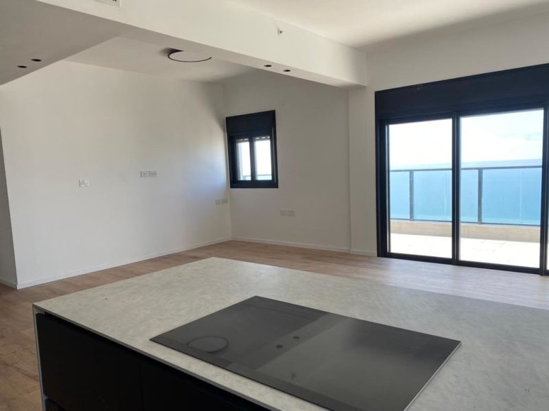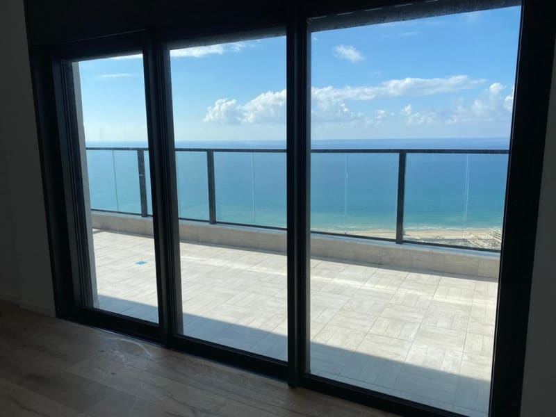 A newly built mini-penthouse, beautifully and cleverly designed by an Israeli architect, located on the 44th floor of a 45-story luxury tower in the Park Hayam, neighborhood in Bat Yam. A prestigious tower combines the highest construction standards and rich and luxurious apartments with a breathtaking view of the Mediterranean Sea. This mini-penthouse spreads over 125 square meters with an additional sea-view terrace (21 square meters). It offers a spacious living room, an open-plan fully equipped kitchen, a primary bedroom, two additional bedrooms, a separate service room equipped with a new washing machine and dryer, and three bathrooms. The property includes two parking places and a storage unit (6sq.m.). The residences enjoy various luxury services such as a 24/7 concierge, a lavish lobby, four elevators, and more. SEA PARK neighborhood is Bat-Yam’s luxury flagship project. It offers an environment-friendly lifestyle, an excellent location by the sea and within walking distance from entertainment and shopping centers, an advanced business center close to all traffic arteries including the light rail, public facilities, and a new academic center. The neighborhood includes a spacious nature reserve by the beach and a seaside hotel complex.