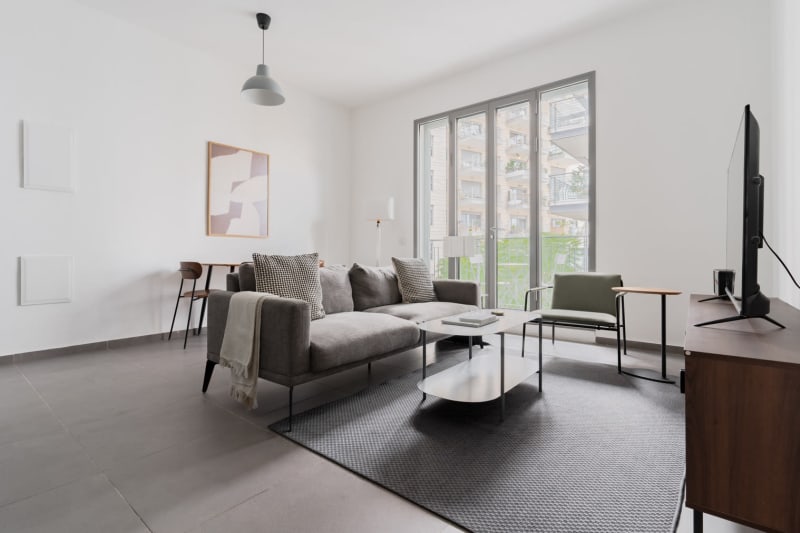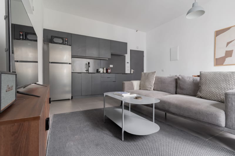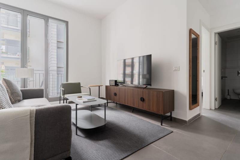 Discover the best of Tel Aviv, with this one bedroom apartment in Florentin with balcony views over the city. It’ll be easy to simply show up and start living in this fashionably furnished apartment with its fully equipped kitchen, pretty living room, and our dedicated, on-the-ground support. (ID #TLV24) Rates vary depending on the duration of stay, season, and other parameters. For exact pricing and additional pricing components, please visit our website and enter your desired move-in and move-out dates. The rate is applicable when billed upfront; it can be higher if billed in multiple payments. Were you looking for an unfurnished lease? Try Blueground instead and upgrade from unfurnished to furnished living: Furnished at rates comparable to unfurnished No setup or furniture costs - save thousands Move-in ready - save time, just bring your suitcase Designed with you in mind Gorgeous furniture, fully equipped kitchen, smart TV, and a premium wireless speaker are just a few of the amenities you’ll find inside this one bedroom apartment. Ideally located in Tel Aviv, you’ll find a lot to love outside as well. When you’re ready to relax, you’ll be happy to discover every bedroom comes with superior quality mattresses. We handle everything so you can simply show up and start living. This apartment also offers in-apartment laundry. Sleeping arrangements Queen Bed, 63in/160cm Amenities Building amenities unique to this one bedroom apartment include an on-site: Dryer Elevator Washing machine Arrival and ongoing support Full Maintenance and Technical Support / cleaning requests at a click of a button. Other things to note The displayed price excludes VAT. Israeli citizens must add 18% VAT, which also applies to reservations without verified tourist status (B2/B3/B4 voucher).