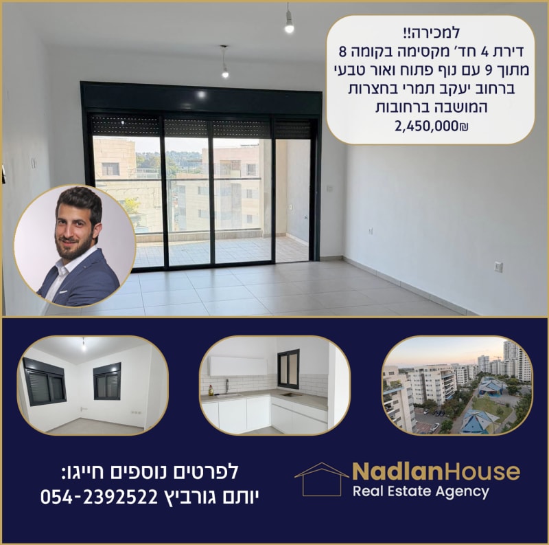 חדש למכירה! דירת 4 חדרים ברחוב יעקב תמרי חצרות המושבה, רחובות! דירה מקסימה בקומה 8 מתוך 9 בפרויקט של גינדי, עם נוף פתוח ושפע של אור טבעי ✨ פרטי הדירה: ✔️ שטח: 94 מ"ר + מרפסת 12 מ"ר ✔️ 2 חניות פרטיות ✔️ 2 חדרי שירותים + מקלחת (כולל יחידת הורים) ✔️ ממ"ד ✔️ דוד שמש ✔️ מעלית 🔧 שדרוגים בדירה: ✔️ מטבח משודרג ✔️ מיזוג מיני מרכזי 🏡 שכונה איכותית עם פארקים, מוסדות חינוך, מרכזי קניות ונגישות מצוינת! 📅 כניסה מידית מחיר: 2,420,000 ש"ח לפרטים נוספים חייגו 📲 יותם גורביץ'- 054-2392522 | רישיון תיווך מספר 3145358 | וואטסאפ: https://katzr.net/38c40c Nadlan House - שיווק פרויקטים למגורים, תיווך נדל''ן ונכסי יוקרה