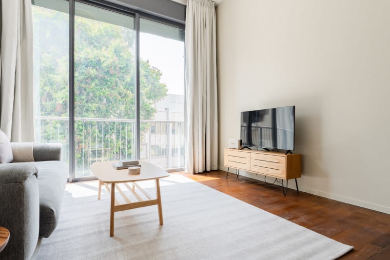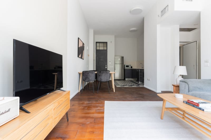 Discover the best of Tel Aviv, with this two bedroom apartment in Lev HaIr with views over the city. It’ll be easy to simply show up and start living in this contemporary furnished apartment with its fully equipped kitchen, charming living room, and our dedicated, on-the-ground support. (ID #TLV90) Rates vary depending on the duration of stay, season, and other parameters. For exact pricing and additional pricing components, please visit our website and enter your desired move-in and move-out dates. The rate is applicable when billed upfront; it can be higher if billed in multiple payments. Were you looking for an unfurnished lease? Try Blueground instead and upgrade from unfurnished to furnished living: Furnished at rates comparable to unfurnished No setup or furniture costs - save thousands Move-in ready - save time, just bring your suitcase Designed with you in mind In this apartment, you’ll find a thoughtfully designed space complete with beautiful furniture and a fully equipped kitchen in this two bedroom property. And, thanks to our superior quality mattresses, luxury linens, and towels, you can relax knowing you’ll always feel comfortably at home. When you’re ready for some fun, you can take in the Tel Aviv vibes or bring the entertainment to you with the premium wireless speaker or smart TV. Sleeping arrangements Queen Bed, 63in/160cm Queen Bed, 63in/160cm Amenities Building amenities unique to this two bedroom apartment include an on-site: Elevator Washing machine Parking Arrival and ongoing support Full Maintenance and Technical Support / cleaning requests at a click of a button. Other things to note Parking is offered based on availability and is subject to a fee. The displayed price excludes VAT. Israeli citizens must add 18% VAT, which also applies to reservations without verified tourist status (B2/B3/B4 voucher).