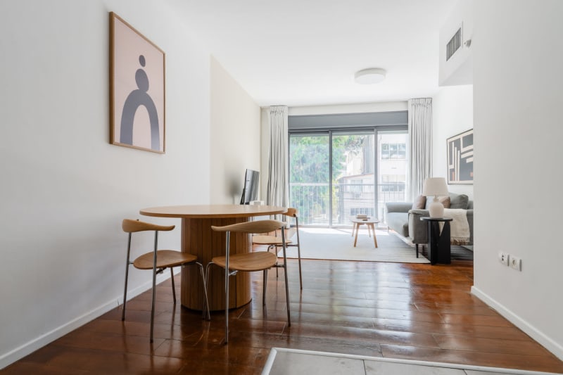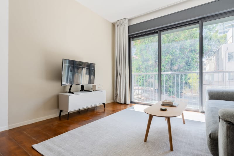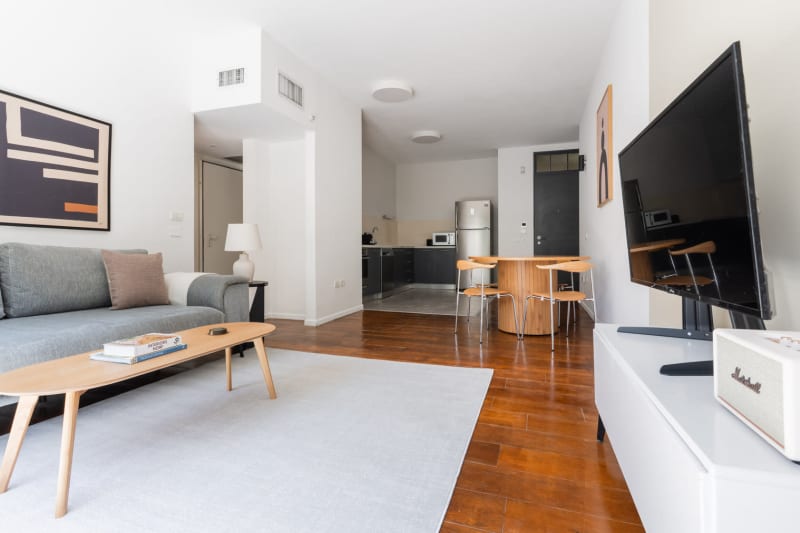 Show up and start living from day one in Tel Aviv with this beautiful two bedroom apartment. You’ll love coming home to this thoughtfully furnished, beautifully designed, and fully equipped Lev HaIr home with stunning views over the city. (ID #TLV85) Rates vary depending on the duration of stay, season, and other parameters. For exact pricing and additional pricing components, please visit our website and enter your desired move-in and move-out dates. The rate is applicable when billed upfront; it can be higher if billed in multiple payments. Were you looking for an unfurnished lease? Try Blueground instead and upgrade from unfurnished to furnished living: Furnished at rates comparable to unfurnished No setup or furniture costs - save thousands Move-in ready - save time, just bring your suitcase Designed with you in mind In this apartment, you’ll find a thoughtfully designed space complete with beautiful furniture and a fully equipped kitchen in this two bedroom property. And, thanks to our superior quality mattresses, luxury linens, and towels, you can relax knowing you’ll always feel comfortably at home. When you’re ready for some fun, you can take in the Tel Aviv vibes or bring the entertainment to you with the premium wireless speaker or smart TV. Sleeping arrangements Queen Bed, 63in/160cm Queen Bed, 63in/160cm Amenities Building amenities unique to this two bedroom apartment include an on-site: Elevator Washing machine Parking Arrival and ongoing support Full Maintenance and Technical Support / cleaning requests at a click of a button. Other things to note This apartment has flexible lease options, allowing you to book it for one month, a year, or more. This apartment can be booked for short term stays, with the option to extend to one month or longer. The displayed price excludes VAT. Israeli citizens must add 18% VAT, which also applies to reservations without verified tourist status (B2/B3/B4 voucher).