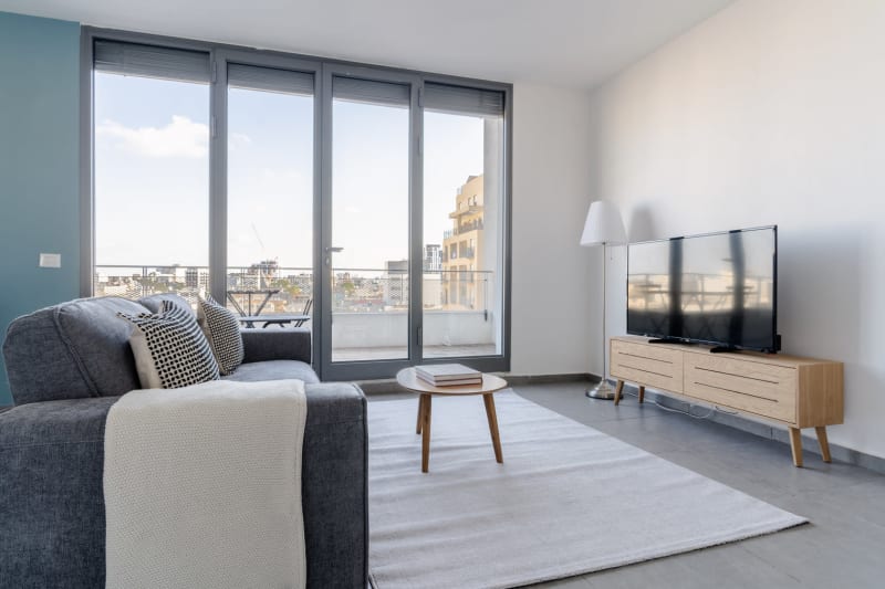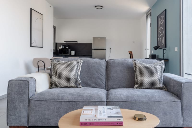 You’ll love this charming Florentin furnished one bedroom apartment with its modern decor, fully equipped kitchen, and pretty living room with great balcony views. Ideally located, you’re close to all the best that Tel Aviv has to offer! (ID #TLV26) Rates vary depending on the duration of stay, season, and other parameters. For exact pricing and additional pricing components, please visit our website and enter your desired move-in and move-out dates. The rate is applicable when billed upfront; it can be higher if billed in multiple payments. Were you looking for an unfurnished lease? Try Blueground instead and upgrade from unfurnished to furnished living: Furnished at rates comparable to unfurnished No setup or furniture costs - save thousands Move-in ready - save time, just bring your suitcase Designed with you in mind Gorgeous furniture, fully equipped kitchen, smart TV, and a premium wireless speaker are just a few of the amenities you’ll find inside this one bedroom apartment. Ideally located in Tel Aviv, you’ll find a lot to love outside as well. When you’re ready to relax, you’ll be happy to discover every bedroom comes with superior quality mattresses. We handle everything so you can simply show up and start living. This apartment also offers in-apartment laundry. Sleeping arrangements Queen Bed, 63in/160cm Amenities Building amenities unique to this one bedroom apartment include an on-site: Dryer Elevator Washing machine Arrival and ongoing support Full Maintenance and Technical Support / cleaning requests at a click of a button. Other things to note This apartment has flexible lease options, allowing you to book it for one month, a year, or more. This apartment can be booked for short term stays, with the option to extend to one month or longer. The displayed price excludes VAT. Israeli citizens must add 18% VAT, which also applies to reservations without verified tourist status (B2/B3/B4 voucher).