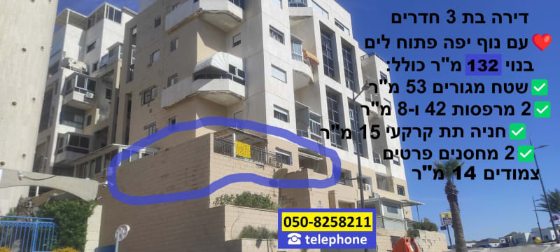במרינה אשקלון דירה למכירה בת 3 חדרים עם נוף יפה לים. סה"כ בנוי 132 מ"ר כולל: שטח מגורים 53 מ"ר + 2 מרפסות ( 42 ו-8 מ"ר) + 14 מ"ר (2 -מחסנים פרטים) + חניה תת קרקעי 15 מ"ר. *שטחי הדירה שפרסמתי בהתאם לאישורי זכויות=!!! מקום מצוין. נוף לים פתוח! חשוב להדגיש כי שטחי הדירה שפרסמתי אמיתיים ולא שאחרים מפרסמים סתם לפרסום! *דמי ועד בית כוללים שימוש בג'קוזי, בריכה, סאונה וחדר כושר.