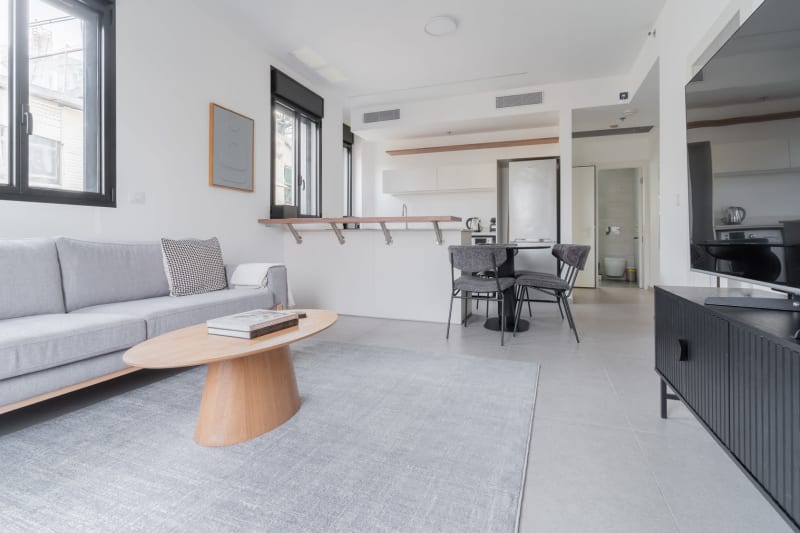 Rates vary depending on the duration of stay, season, and other parameters. For exact pricing and additional pricing components, please visit our website and enter your desired move-in and move-out dates. The rate is applicable when billed upfront; it can be higher if billed in multiple payments. Discover the best of Tel Aviv, with this two bedroom apartment in Tel Aviv. It’ll be easy to simply show up and start living in this elegantly furnished apartment with its fully equipped kitchen, bright living room, and our dedicated, on-the-ground support. (ID #TLV38) Were you looking for an unfurnished lease? Try Blueground instead and upgrade from unfurnished to furnished living: Furnished at rates comparable to unfurnished No setup or furniture costs - save thousands Move-in ready - save time, just bring your suitcase Designed with you in mind Gorgeous furniture, fully equipped kitchen, smart TV, and a premium wireless speaker are just a few of the amenities you’ll find inside this two bedroom apartment. Ideally located in Tel Aviv, you’ll find a lot to love outside as well. When you’re ready to relax, you’ll be happy to discover every bedroom comes with superior quality mattresses. We handle everything so you can simply show up and start living. Sleeping arrangements Queen Bed, 63in/160cm Double Bed, 55in/140cm Amenities Building amenities unique to this two bedroom apartment include an on-site: Elevator Washing machine Pets allowed Arrival and ongoing support Full Maintenance and Technical Support / cleaning requests at a click of a button. Other things to note This apartment has flexible lease options, allowing you to book it for one month, a year, or more. Pets are welcome, though weight limits and breed restrictions apply and may incur fees.