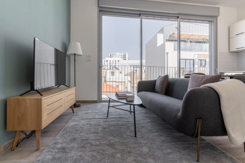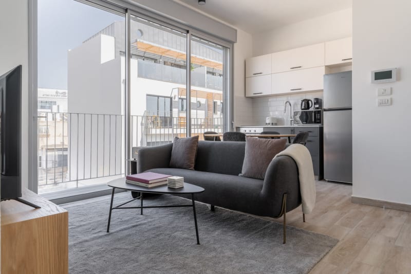 Discover the best of Tel Aviv, with this two bedroom apartment in Tel Aviv with balcony views over the city. It’ll be easy to simply show up and start living in this lavishly Blueground furnished apartment with its fully equipped kitchen, lovely living room, and our dedicated, on-the-ground support. (ID #TLV18) Rates vary depending on the duration of stay, season, and other parameters. For exact pricing and additional pricing components, please visit our website and enter your desired move-in and move-out dates. The rate is applicable when billed upfront; it can be higher if billed in multiple payments. Were you looking for an unfurnished lease? Try Blueground instead and upgrade from unfurnished to furnished living: Furnished at rates comparable to unfurnished No setup or furniture costs - save thousands Move-in ready - save time, just bring your suitcase Designed with you in mind As with any Blueground apartment, you’ll find a thoughtfully designed space complete with beautiful furniture and a fully equipped kitchen in this two bedroom property. And, thanks to our superior quality mattresses, luxury linens, and towels, you can relax knowing you’ll always feel comfortably at home. When you’re ready for some fun, you can take in the Tel Aviv vibes or bring the entertainment to you with the premium wireless speaker or smart TV. Sleeping arrangements Queen Bed, 63in/160cm Queen Bed, 63in/160cm Amenities Building amenities unique to this two bedroom apartment include an on-site: Dryer in building Elevator Washing machine in building Pets allowed Arrival and ongoing support Full Maintenance and Technical Support / cleaning requests at a click of a button. Other things to note Pet fees may apply. The displayed price excludes VAT. Israeli citizens must add 18% VAT, which also applies to reservations without verified tourist status (B2/B3/B4 voucher).