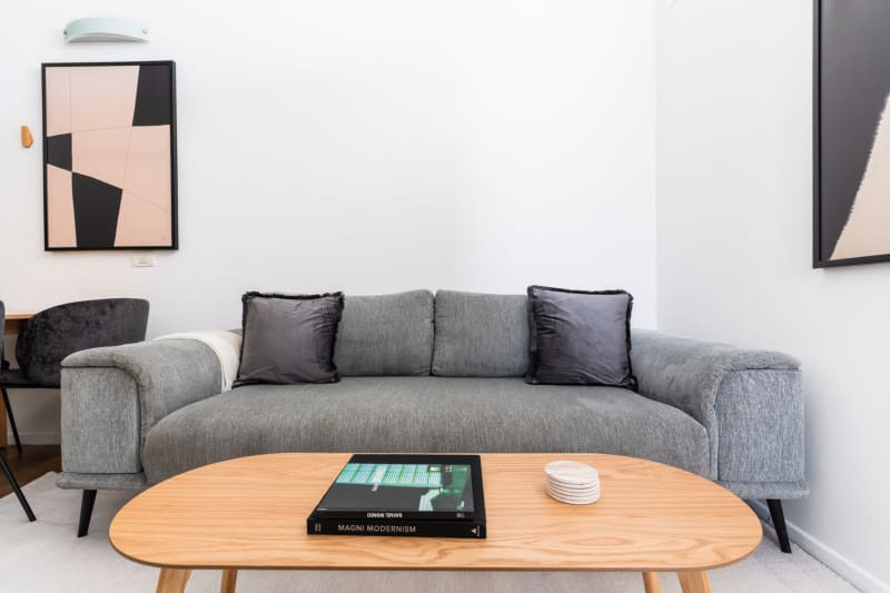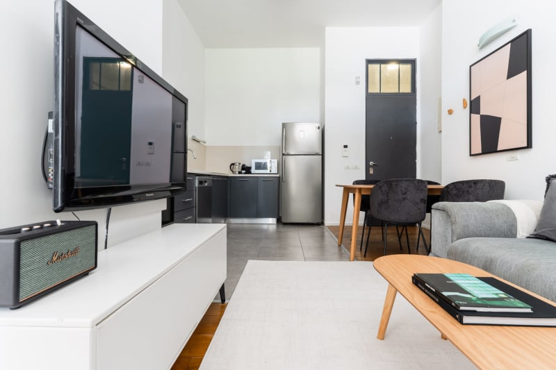 You’ll love this beautiful Lev HaIr furnished three bedroom apartment with its modern decor, fully equipped kitchen, and exquisite living room with great views. Ideally located, you’re close to all the best that Tel Aviv has to offer! (ID #TLV93) Rates vary depending on the duration of stay, season, and other parameters. For exact pricing and additional pricing components, please visit our website and enter your desired move-in and move-out dates. The rate is applicable when billed upfront; it can be higher if billed in multiple payments. Were you looking for an unfurnished lease? Try Blueground instead and upgrade from unfurnished to furnished living: Furnished at rates comparable to unfurnished No setup or furniture costs - save thousands Move-in ready - save time, just bring your suitcase Designed with you in mind Thoughtfully designed with bespoke finishes, modern furnishings, and a fully equipped kitchen, you’ll enjoy that “I’m home” feeling with this apartment. Whether you’re lounging in your charming living room streaming the latest and greatest entertainment on the smart TV or premium wireless speaker, or getting some well-earned rest on the superior quality mattress with luxury linens, you’ll fall in love with everything this Lev HaIr apartment has to offer. Sleeping arrangements Queen Bed, 63in/160cm Queen Bed, 63in/160cm Queen Bed, 63in/160cm Amenities Building amenities unique to this three bedroom apartment include an on-site: Elevator Washing machine Parking Arrival and ongoing support Full Maintenance and Technical Support / cleaning requests at a click of a button. Other things to note This apartment has flexible lease options, allowing you to book it for one month, a year, or more. This apartment can be booked for short term stays, with the option to extend to one month or longer. The displayed price excludes VAT. Israeli citizens must add 18% VAT, which also applies to reservations without verified tourist status (B2/B3/B4 voucher).