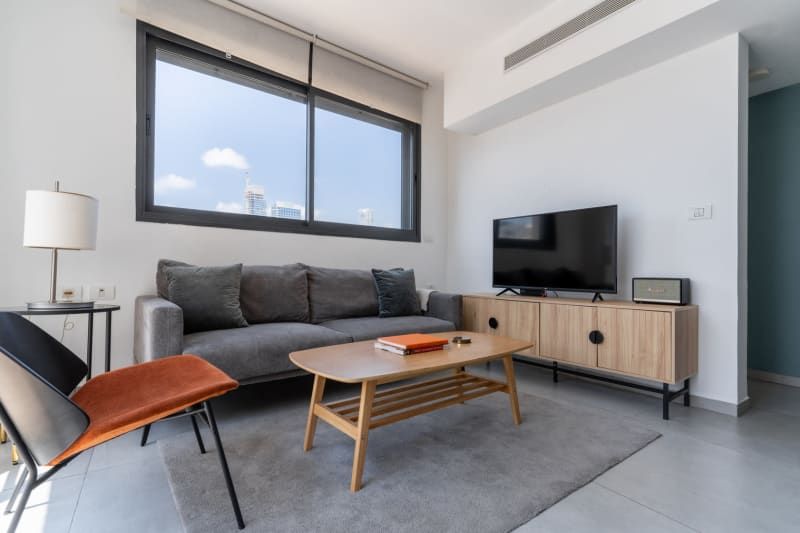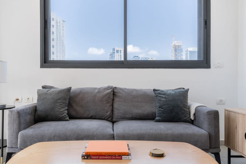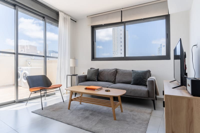Show up and start living from day one in Tel Aviv with this cozy one bedroom Blueground apartment. You’ll love coming home to this thoughtfully furnished, beautifully designed, and fully equipped Florentin home with stunning balcony views over the city. (ID #TLV1) Rates vary depending on the duration of stay, season, and other parameters. For exact pricing and additional pricing components, please visit our website and enter your desired move-in and move-out dates. The rate is applicable when billed upfront; it can be higher if billed in multiple payments. Were you looking for an unfurnished lease? Try Blueground instead and upgrade from unfurnished to furnished living: Furnished at rates comparable to unfurnished No setup or furniture costs - save thousands Move-in ready - save time, just bring your suitcase Designed with you in mind Thoughtfully designed with bespoke finishes, modern furnishings, and a fully equipped kitchen, you’ll enjoy that “I’m home” feeling with this Blueground apartment. Whether you’re lounging in your pretty living room streaming the latest and greatest entertainment on the smart TV or premium wireless speaker, or getting some well-earned rest on the superior quality mattress with luxury linens, you’ll fall in love with everything this Florentin apartment has to offer. This apartment also offers in-apartment laundry. Sleeping arrangements Queen Bed, 63in/160cm Amenities Building amenities unique to this one bedroom apartment include an on-site: Dryer Elevator Washing machine Pets allowed Arrival and ongoing support Full Maintenance and Technical Support / cleaning requests at a click of a button. Other things to note Pet fees may apply. The displayed price excludes VAT. Israeli citizens must add 18% VAT, which also applies to reservations without verified tourist status (B2/B3/B4 voucher).