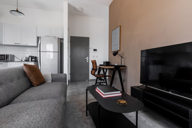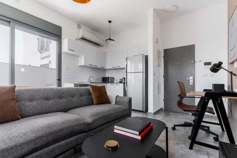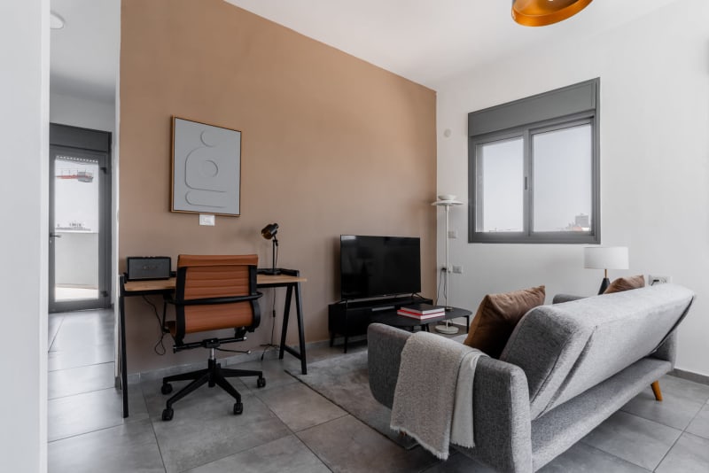 Discover the best of Tel Aviv, with this two bedroom apartment in Florentin with balcony views over the city. It’ll be easy to simply show up and start living in this airy furnished apartment with its fully equipped kitchen, sophisticated living room, and our dedicated, on-the-ground support. (ID #TLV2) Rates vary depending on the duration of stay, season, and other parameters. For exact pricing and additional pricing components, please visit our website and enter your desired move-in and move-out dates. The rate is applicable when billed upfront; it can be higher if billed in multiple payments. Were you looking for an unfurnished lease? Try Blueground instead and upgrade from unfurnished to furnished living: Furnished at rates comparable to unfurnished No setup or furniture costs - save thousands Move-in ready - save time, just bring your suitcase Designed with you in mind In this apartment, you’ll find a thoughtfully designed space complete with beautiful furniture and a fully equipped kitchen in this two bedroom property. And, thanks to our superior quality mattresses, luxury linens, and towels, you can relax knowing you’ll always feel comfortably at home. When you’re ready for some fun, you can take in the Tel Aviv vibes or bring the entertainment to you with the premium wireless speaker or smart TV. This apartment also offers in-apartment laundry. Sleeping arrangements Queen Bed, 63in/160cm Queen Bed, 63in/160cm Amenities Building amenities unique to this two bedroom apartment include an on-site: Dryer Elevator Washing machine Pets allowed Arrival and ongoing support Full Maintenance and Technical Support / cleaning requests at a click of a button. Other things to note This apartment has flexible lease options, allowing you to book it for one month, a year, or more. The displayed price excludes VAT. Israeli citizens must add 18% VAT, which also applies to reservations without verified tourist status (B2/B3/B4 voucher).