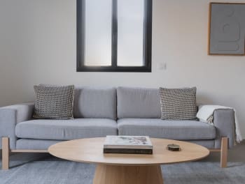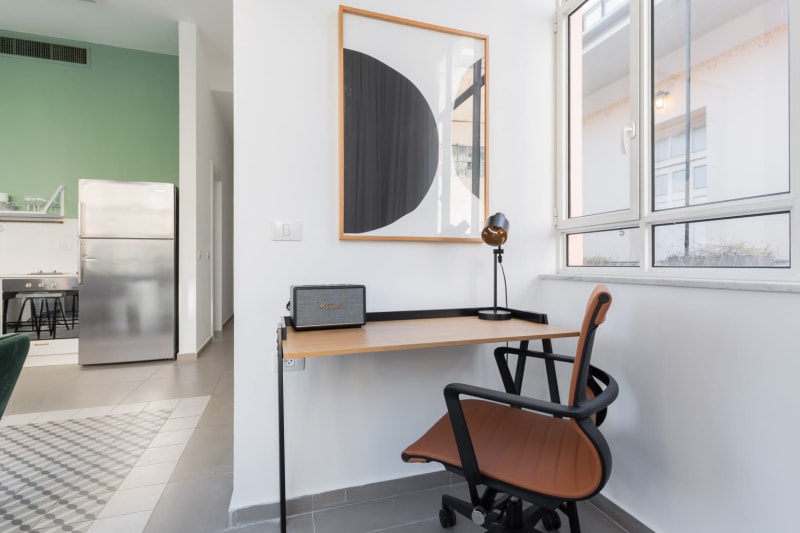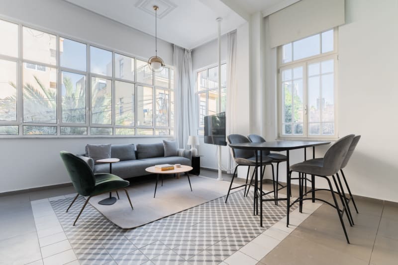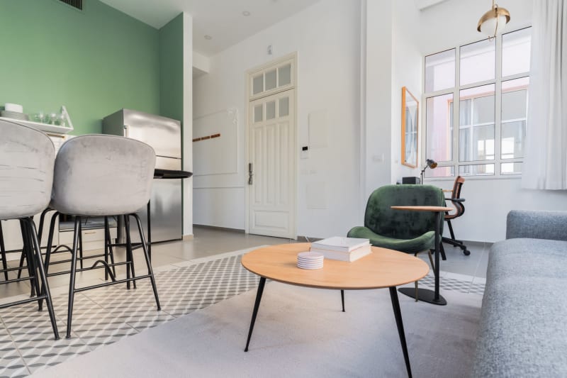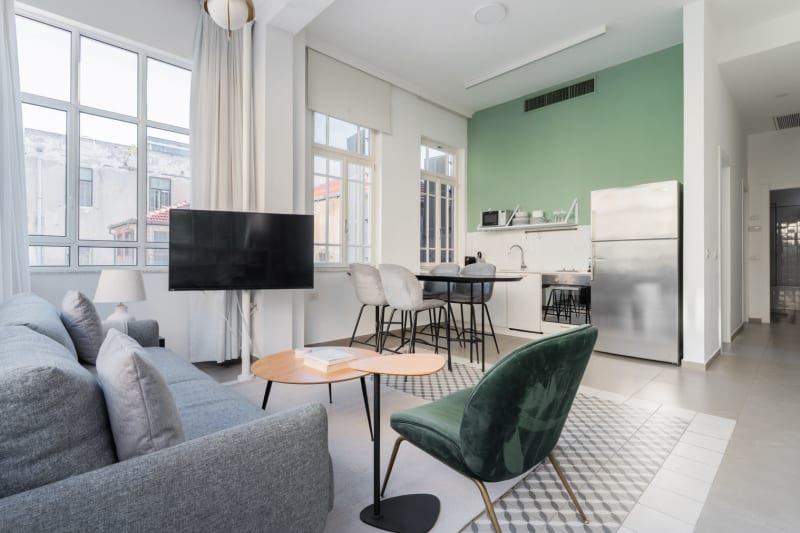 Discover the best of Tel Aviv, with this two bedroom apartment in Nachalat Binyamin with views over the city. It’ll be easy to simply show up and start living in this airy furnished apartment with its fully equipped kitchen, sophisticated living room, and our dedicated, on-the-ground support. (ID #TLV56) Rates vary depending on the duration of stay, season, and other parameters. For exact pricing and additional pricing components, please visit our website and enter your desired move-in and move-out dates. The rate is applicable when billed upfront; it can be higher if billed in multiple payments. Were you looking for an unfurnished lease? Try Blueground instead and upgrade from unfurnished to furnished living: Furnished at rates comparable to unfurnished No setup or furniture costs - save thousands Move-in ready - save time, just bring your suitcase Designed with you in mind In this apartment, you’ll find a thoughtfully designed space complete with beautiful furniture and a fully equipped kitchen in this two bedroom property. And, thanks to our superior quality mattresses, luxury linens, and towels, you can relax knowing you’ll always feel comfortably at home. When you’re ready for some fun, you can take in the Tel Aviv vibes or bring the entertainment to you with the premium wireless speaker or smart TV. This apartment also offers in-apartment laundry. Sleeping arrangements Queen Bed, 63in/160cm Queen Bed, 63in/160cm Amenities Building amenities unique to this two bedroom apartment include an on-site: Dryer Washing machine Rooftop Arrival and ongoing support Full Maintenance and Technical Support / cleaning requests at a click of a button. Other things to note The displayed price excludes VAT. Israeli citizens must add 18% VAT, which also applies to reservations without verified tourist status (B2/B3/B4 voucher).