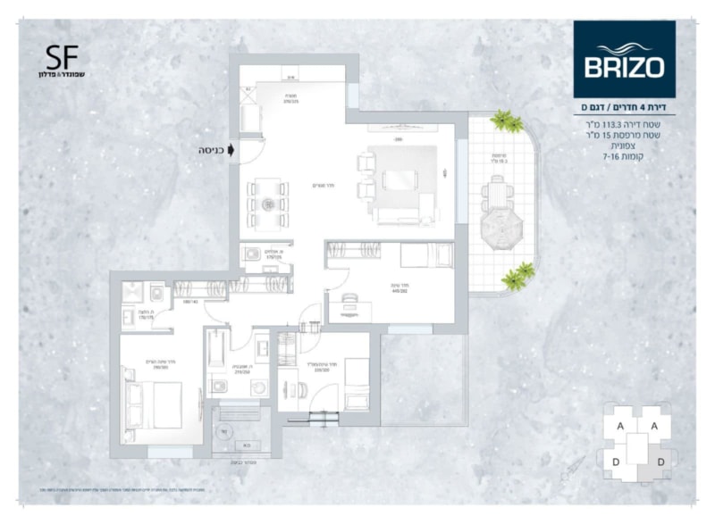 🏡 למכירה בשיווק בלעדי: דירת 4 חדרים חדשה ומדהימה בפרויקט היוקרתי בריזו בשכונת פארק הים בבת ים . ✨ **תיאור הדירה:** דירה ממוקמת בקומה 15, בשטח של 114 מטר נטו + מרפסת שמש של 15 מטר המציעה נוף מרהיב לים התיכון. הדירה מסוגננת ברמה הגבוהה ביותר וממתינה לכם! 🏋️♂️ **יתרונות הפרויקט:** - חדר כושר משוכלל 💪 - פינות ישיבה נוחות בשטחים המשותפים 🌳 - לאונג' עסקים למגוון פעילויות 📈 - ספא מפואר עם חדרי טיפול 🧖♀️ - מועדון דיירים מאובזר 🎉 🚗 לדירה חניה תת קרקעית בטאבו ומחסן. 📅 **מועד אכלוס: נובמבר 2025** 🌟 **על הפרויקט:** Brizo – היהלום שבכתר של הסיטי החדש של גוש דן בשכונת פארק הים בבת ים. המגדלים הגבוהים בני 22 ו-20 קומות ממוקמים במרחק של כ-500 מטרים מהחוף, עם עיצוב אדריכלי פורץ דרך. שטחי הדירות רחבים ומעניקים תחושת חופש שמתחברת לנוף המהמם מהמרפסות. 🛠️ הבניין מחופה בחומרים יוקרתיים, ורמת הגמר הגבוהה מבטיחה חווית מגורים שאין דומה לה. 📞 **מעוניינים לבקר בנכס או לקבל עוד פרטים? צרו קשר עכשיו:** 050-5258547 דן בנדל"ן – שיווק בלעדי. 🌟✨