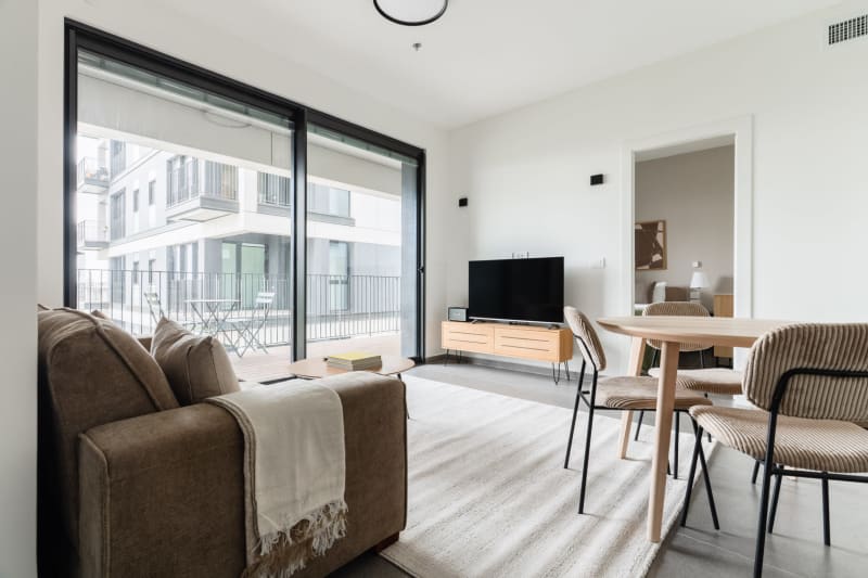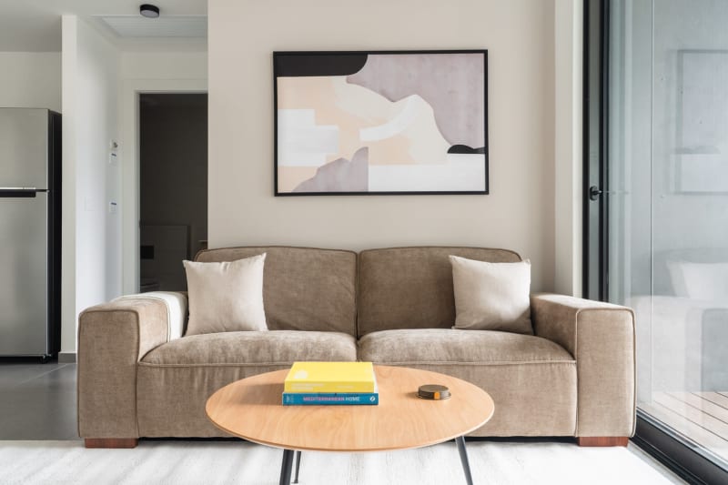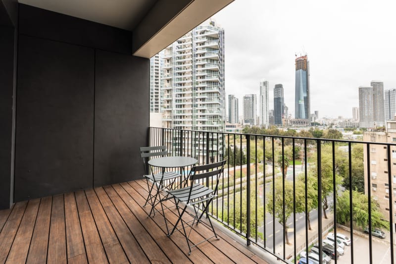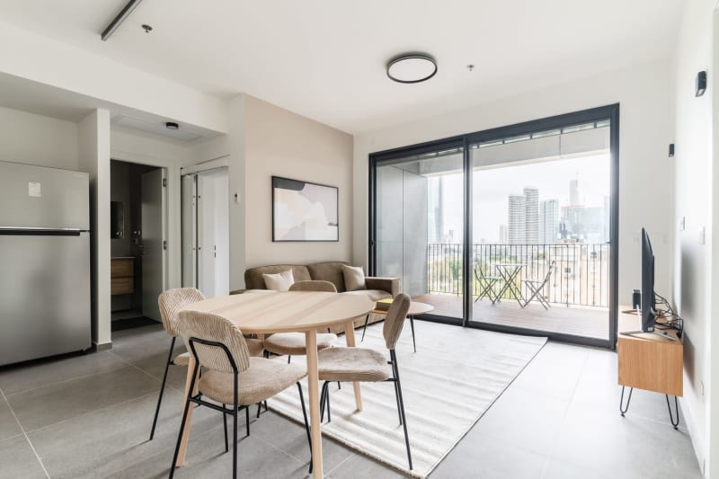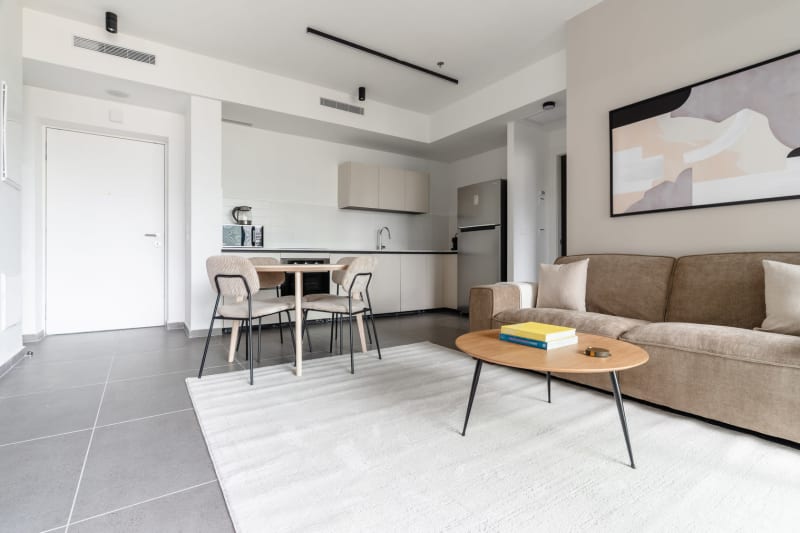 You’ll love this roomy Tel Aviv furnished two bedroom apartment with its modern decor, fully equipped kitchen, and cheery living room with great balcony views. Ideally located, you’re close to all the best that Tel Aviv has to offer! (ID #TLV69) Rates vary depending on the duration of stay, season, and other parameters. For exact pricing and additional pricing components, please visit our website and enter your desired move-in and move-out dates. The rate is applicable when billed upfront; it can be higher if billed in multiple payments. Were you looking for an unfurnished lease? Try Blueground instead and upgrade from unfurnished to furnished living: Furnished at rates comparable to unfurnished No setup or furniture costs - save thousands Move-in ready - save time, just bring your suitcase Designed with you in mind Gorgeous furniture, fully equipped kitchen, smart TV, and a premium wireless speaker are just a few of the amenities you’ll find inside this two bedroom apartment. Ideally located in Tel Aviv, you’ll find a lot to love outside as well. When you’re ready to relax, you’ll be happy to discover every bedroom comes with superior quality mattresses. We handle everything so you can simply show up and start living. This apartment also offers in-apartment laundry. Sleeping arrangements Queen Bed, 63in/160cm Queen Bed, 63in/160cm Amenities Building amenities unique to this two bedroom apartment include an on-site: Doorman Dryer Elevator Washing machine Parking Sauna Arrival and ongoing support Full Maintenance and Technical Support / cleaning requests at a click of a button. Other things to note Building amenities may have an extra cost. Parking is offered based on availability and is subject to a fee. The displayed price excludes VAT. Israeli citizens must add 18% VAT, which also applies to reservations without verified tourist status (B2/B3/B4 voucher).