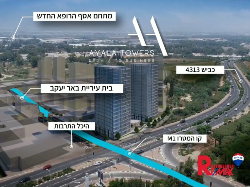 פרויקט AYALA TOWERS במיקום הכי מושלם בלב הארץ, 2 מגדלי משרדים בעיצוב חדשני ותכנון חכם עמק 5 (מחנה צריפין באר- יעקב) משרד במגדל A מתאים לכל מטרה ניתן לחלוקה בהתאמה אישית 105 מ"ר ברוטו בחלל אחד ברמת מעטפת. קומה 4 (מתוך 17), עם 5 מעליות (כולל משא) שירותים קומתיים מתחם חניה ציבורי סמוך כניסה מיידית אזור מעולה, קרוב ליציאות המהירות לנתיבי תחבורה מרכזיים ודרכי גישה מאוד נוחים.