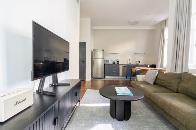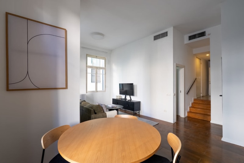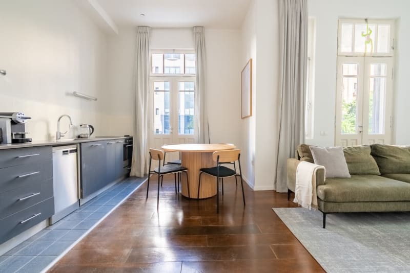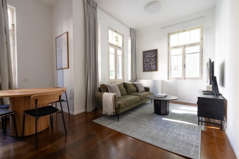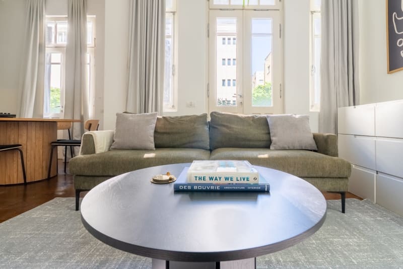 Show up and start living from day one in Tel Aviv with this spacious two bedroom apartment. You’ll love coming home to this thoughtfully furnished, beautifully designed, and fully equipped Lev HaIr home with stunning balcony views over the city. (ID #TLV88) Rates vary depending on the duration of stay, season, and other parameters. For exact pricing and additional pricing components, please visit our website and enter your desired move-in and move-out dates. The rate is applicable when billed upfront; it can be higher if billed in multiple payments. Were you looking for an unfurnished lease? Try Blueground instead and upgrade from unfurnished to furnished living: Furnished at rates comparable to unfurnished No setup or furniture costs - save thousands Move-in ready - save time, just bring your suitcase Designed with you in mind Thoughtfully designed with bespoke finishes, modern furnishings, and a fully equipped kitchen, you’ll enjoy that “I’m home” feeling with this apartment. Whether you’re lounging in your pretty living room streaming the latest and greatest entertainment on the smart TV or premium wireless speaker, or getting some well-earned rest on the superior quality mattress with luxury linens, you’ll fall in love with everything this Lev HaIr apartment has to offer. Sleeping arrangements Queen Bed, 63in/160cm Queen Bed, 63in/160cm Amenities Building amenities unique to this two bedroom apartment include an on-site: Elevator Washing machine Parking Arrival and ongoing support Full Maintenance and Technical Support / cleaning requests at a click of a button. Other things to note This apartment has flexible lease options, allowing you to book it for one month, a year, or more. This apartment can be booked for short term stays, with the option to extend to one month or longer. The displayed price excludes VAT. Israeli citizens must add 18% VAT, which also applies to reservations without verified tourist status (B2/B3/B4 voucher).