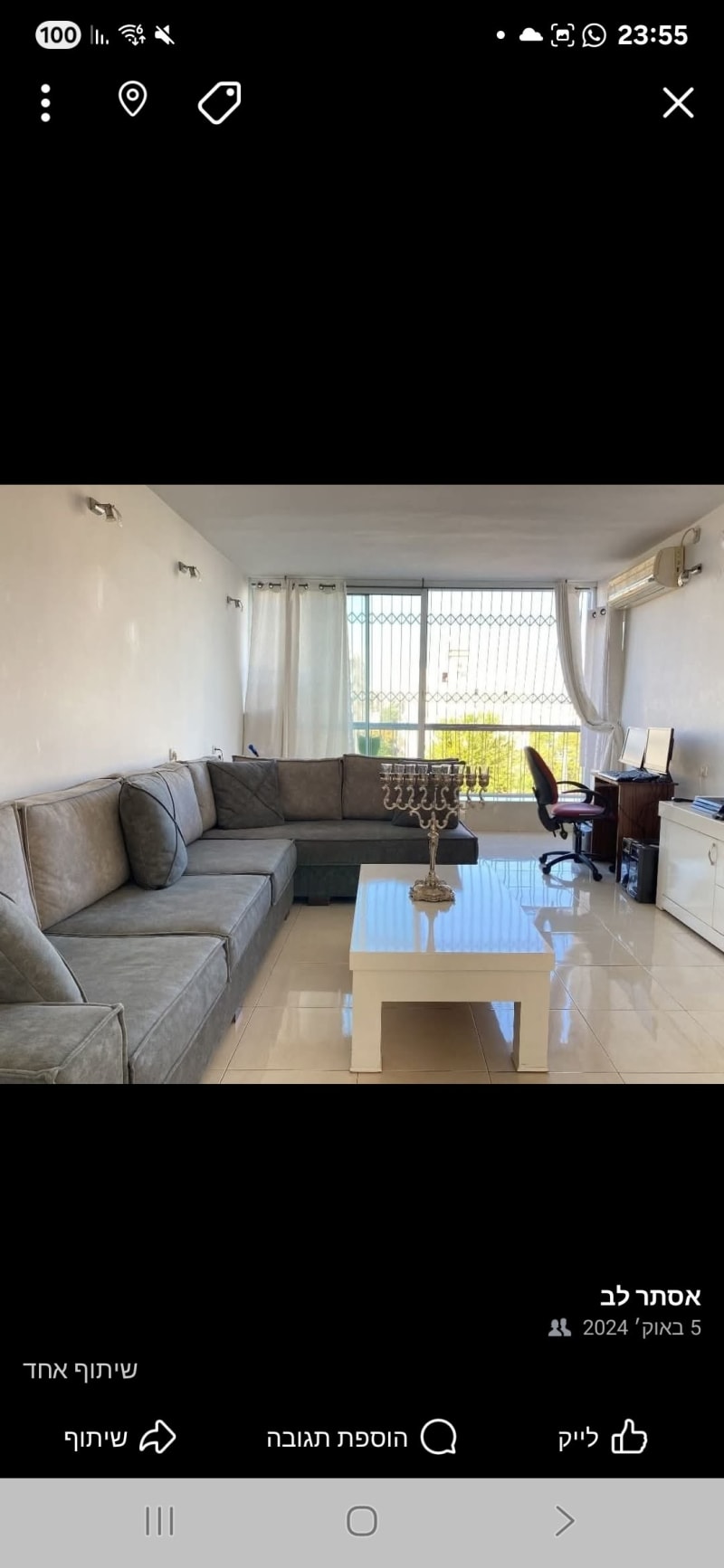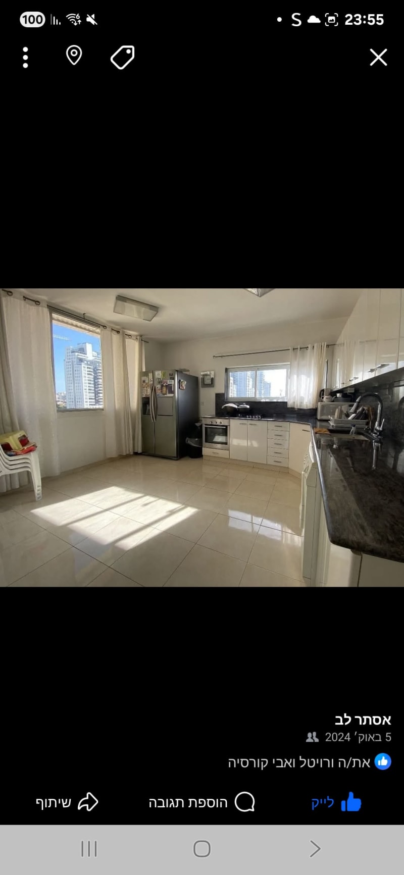 דירה להשכרה מהממת ומבורכת מלאה באור, 4חדרים ברחוב ההסתדרות חולון , קומה 5 מתוך 7, 100מטר, 3כיווני אויר בית גדול ומרווח עם מעלית+דוד שמש +מקלט , מטבח גדול ,יש מזגנים חדשים בכל הבית ,מרוהטת קומפלט ספה בצורת ר', שולחן מזנון פינת אוכל מיטה זוגית, ארונות קיר בכל החדרים +ארון שרות במסדרון, 2 שרותים , מחיר 6100 ש"ח ,חניה משותפת לכל הדיירים חניה ענקית, קרובה לבתי ספר וגנים ולמכללת HIT ,תחבורה ציבורית יש פארקים מסביב מקום שקט כניסה ב 1.12 אפשר גם לפני בבקשה לא למתווכים פרטים בטלפון 0545995170