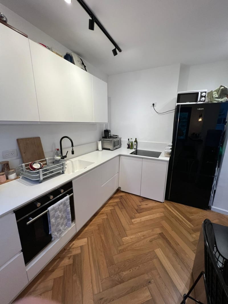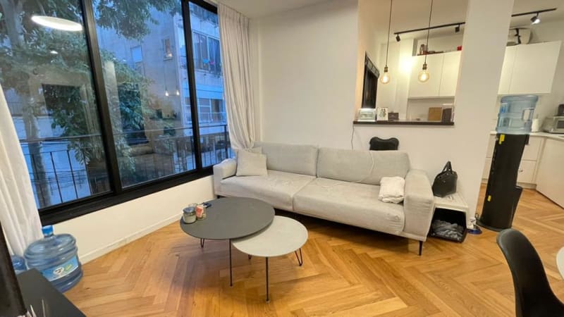 No brokerage!! With a proper shelter in the building. Steps away from the park and Yirmiyahu Street. Stunning, fully renovated by an architect to a very high standard! Wooden parquet, facing greenery and very quiet, fully furnished with central A/C. Suitable for a single person or a couple. Small, well-maintained building with only 8 units, elevator to the floor, and a storage room available for residents.