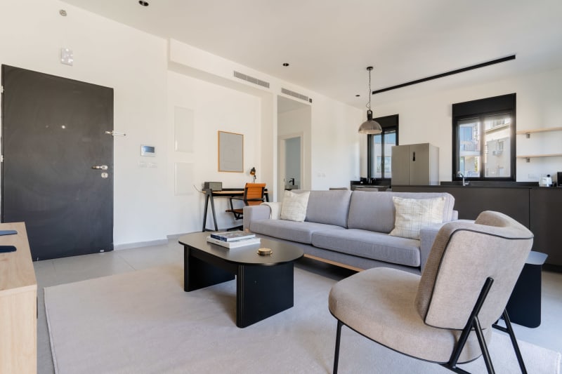 Show up and start living from day one in Tel Aviv with this sophisticated two bedroom Blueground apartment. You’ll love coming home to this thoughtfully furnished, beautifully designed, and fully equipped Tel Aviv home with stunning balcony views over the city. (ID #TLV22) Rates vary depending on the duration of stay, season, and other parameters. For exact pricing and additional pricing components, please visit our website and enter your desired move-in and move-out dates. The rate is applicable when billed upfront; it can be higher if billed in multiple payments. Were you looking for an unfurnished lease? Try Blueground instead and upgrade from unfurnished to furnished living: Furnished at rates comparable to unfurnished No setup or furniture costs - save thousands Move-in ready - save time, just bring your suitcase Designed with you in mind Gorgeous furniture, fully equipped kitchen, smart TV, and a premium wireless speaker are just a few of the amenities you’ll find inside this two bedroom apartment. Ideally located in Tel Aviv, you’ll find a lot to love outside as well. When you’re ready to relax, you’ll be happy to discover every Blueground bedroom comes with superior quality mattresses, luxury linens, and cozy towels. We handle everything so you can simply show up and start living. This apartment also offers in-apartment laundry. Sleeping arrangements Queen Bed, 63in/160cm Queen Bed, 63in/160cm Amenities Building amenities unique to this two bedroom apartment include an on-site: Dryer Elevator Washing machine Pets allowed Arrival and ongoing support Full Maintenance and Technical Support / cleaning requests at a click of a button. Other things to note Pet fees may apply. The displayed price excludes VAT. Israeli citizens must add 18% VAT, which also applies to reservations without verified tourist status (B2/B3/B4 voucher).