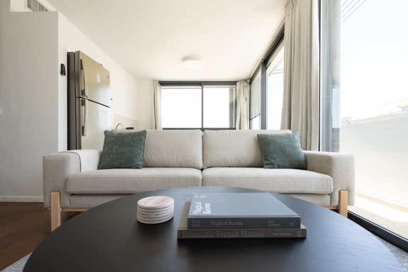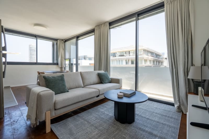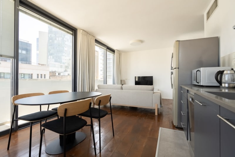 Discover the best of Tel Aviv, with this two bedroom apartment in Lev HaIr with balcony views over the city. It’ll be easy to simply show up and start living in this beautifully furnished apartment with its fully equipped kitchen, lovely living room, and our dedicated, on-the-ground support. (ID #TLV99) Rates vary depending on the duration of stay, season, and other parameters. For exact pricing and additional pricing components, please visit our website and enter your desired move-in and move-out dates. The rate is applicable when billed upfront; it can be higher if billed in multiple payments. Were you looking for an unfurnished lease? Try Blueground instead and upgrade from unfurnished to furnished living: Furnished at rates comparable to unfurnished No setup or furniture costs - save thousands Move-in ready - save time, just bring your suitcase Designed with you in mind In this apartment, you’ll find a thoughtfully designed space complete with beautiful furniture and a fully equipped kitchen in this two bedroom property. And, thanks to our superior quality mattresses, luxury linens, and towels, you can relax knowing you’ll always feel comfortably at home. When you’re ready for some fun, you can take in the Tel Aviv vibes or bring the entertainment to you with the premium wireless speaker or smart TV. Sleeping arrangements Queen Bed, 63in/160cm Queen Bed, 63in/160cm Amenities Building amenities unique to this two bedroom apartment include an on-site: Elevator Washing machine Parking Arrival and ongoing support Full Maintenance and Technical Support / cleaning requests at a click of a button. Other things to note Parking is offered based on availability and is subject to a fee. The displayed price excludes VAT. Israeli citizens must add 18% VAT, which also applies to reservations without verified tourist status (B2/B3/B4 voucher).