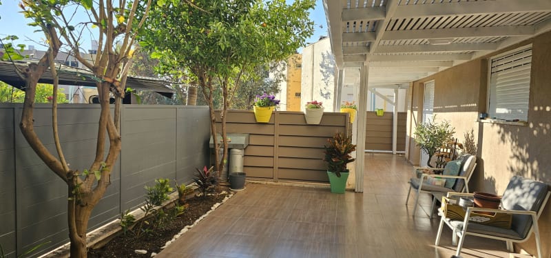 דירת גן 4חד מהממת עם כניסה נפרדת.עם ממד,מחסן,חנייה,שירותים ומקלחת כפולים.5 מזגנים,פרגולות.תריסי אור.3 כיווני אוויר.