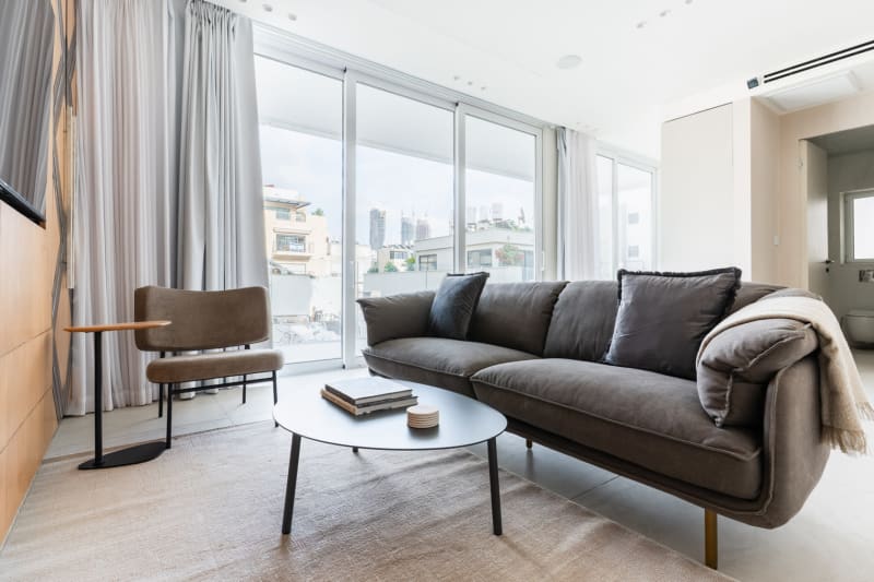 Show up and start living from day one in Tel Aviv with this stylish one bedroom apartment. You’ll love coming home to this thoughtfully furnished, beautifully designed, and fully equipped Tel Aviv home. (ID #TLV75) Rates vary depending on the duration of stay, season, and other parameters. For exact pricing and additional pricing components, please visit our website and enter your desired move-in and move-out dates. The rate is applicable when billed upfront; it can be higher if billed in multiple payments. Were you looking for an unfurnished lease? Try Blueground instead and upgrade from unfurnished to furnished living: Furnished at rates comparable to unfurnished No setup or furniture costs - save thousands Move-in ready - save time, just bring your suitcase Designed with you in mind Thoughtfully designed with bespoke finishes, modern furnishings, and a fully equipped kitchen, you’ll enjoy that “I’m home” feeling with this apartment. Whether you’re lounging in your comfortable living room streaming the latest and greatest entertainment on the smart TV or premium wireless speaker, or getting some well-earned rest on the superior quality mattress with luxury linens, you’ll fall in love with everything this Tel Aviv apartment has to offer. Sleeping arrangements Queen Bed, 63in/160cm Amenities Building amenities unique to this one bedroom apartment include an on-site: Elevator Washing machine Parking Arrival and ongoing support Full Maintenance and Technical Support / cleaning requests at a click of a button. Other things to note This apartment has flexible lease options, allowing you to book it for one month, a year, or more. This apartment can be booked for short term stays, with the option to extend to one month or longer. The displayed price excludes VAT. Israeli citizens must add 18% VAT, which also applies to reservations without verified tourist status (B2/B3/B4 voucher).