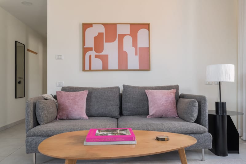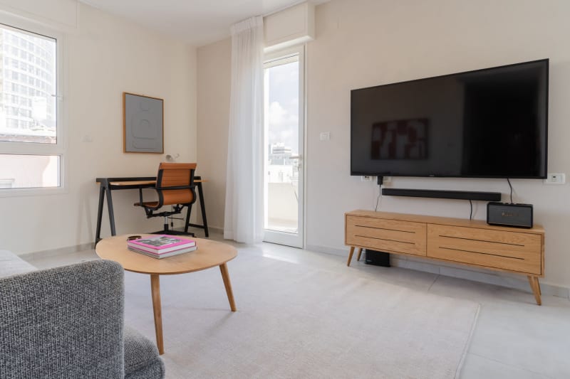 Feel at home wherever you choose to live with Blueground. You’ll love this stylish Nachalat Binyamin furnished one bedroom apartment with its modern decor, fully equipped kitchen, and comfortable living room with great balcony views. Ideally located, you’re close to all the best that Tel Aviv has to offer! (ID #TLV28) Rates vary depending on the duration of stay, season, and other parameters. For exact pricing and additional pricing components, please visit our website and enter your desired move-in and move-out dates. The rate is applicable when billed upfront; it can be higher if billed in multiple payments. Were you looking for an unfurnished lease? Try Blueground instead and upgrade from unfurnished to furnished living: Furnished at rates comparable to unfurnished No setup or furniture costs - save thousands Move-in ready - save time, just bring your suitcase Designed with you in mind As with any Blueground apartment, you’ll find a thoughtfully designed space complete with beautiful furniture and a fully equipped kitchen in this one bedroom property. And, thanks to our superior quality mattresses, luxury linens, and towels, you can relax knowing you’ll always feel comfortably at home. When you’re ready for some fun, you can take in the Tel Aviv vibes or bring the entertainment to you with the premium wireless speaker or smart TV. This apartment also offers in-apartment laundry. Sleeping arrangements Queen Bed, 63in/160cm Amenities Building amenities unique to this one bedroom apartment include an on-site: Dryer Elevator Washing machine Pets allowed Arrival and ongoing support Full Maintenance and Technical Support / cleaning requests at a click of a button. Other things to note Pet fees may apply. The displayed price excludes VAT. Israeli citizens must add 18% VAT, which also applies to reservations without verified tourist status (B2/B3/B4 voucher).