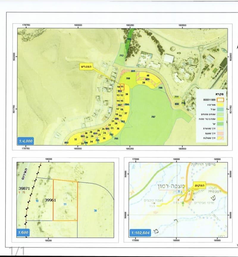 מגרש למכירה בשדרות הר הגמל 10 מצפה רמון בעלת שטח 500, כיווני אוויר: , תוספות:: , .