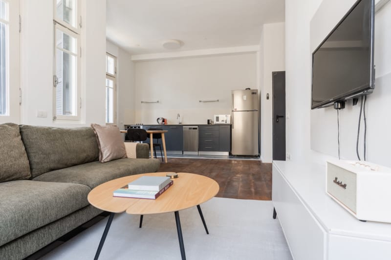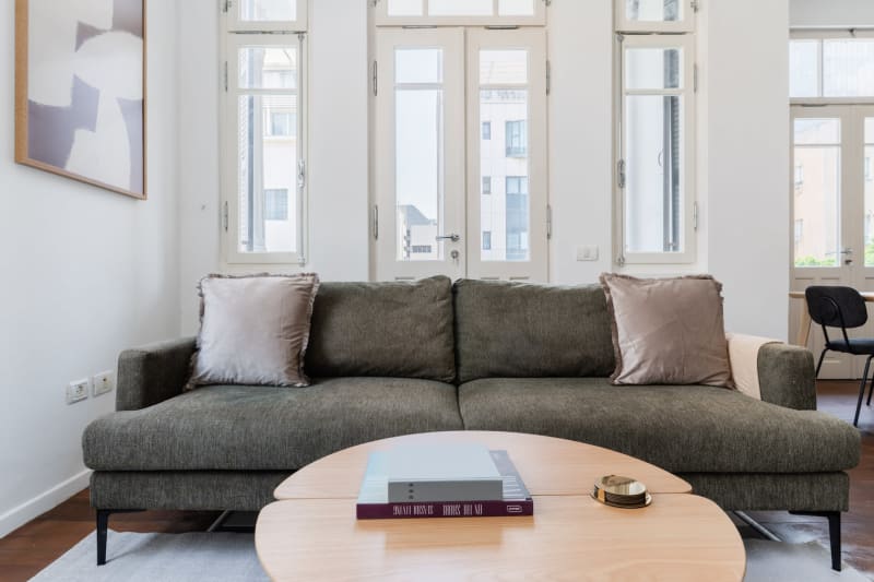 Discover the best of Tel Aviv, with this two bedroom apartment in Lev HaIr with balcony views over the city. It’ll be easy to simply show up and start living in this modernly furnished apartment with its fully equipped kitchen, pretty living room, and our dedicated, on-the-ground support. (ID #TLV91) Rates vary depending on the duration of stay, season, and other parameters. For exact pricing and additional pricing components, please visit our website and enter your desired move-in and move-out dates. The rate is applicable when billed upfront; it can be higher if billed in multiple payments. Were you looking for an unfurnished lease? Try Blueground instead and upgrade from unfurnished to furnished living: Furnished at rates comparable to unfurnished No setup or furniture costs - save thousands Move-in ready - save time, just bring your suitcase Designed with you in mind Gorgeous furniture, fully equipped kitchen, smart TV, and a premium wireless speaker are just a few of the amenities you’ll find inside this two bedroom apartment. Ideally located in Tel Aviv, you’ll find a lot to love outside as well. When you’re ready to relax, you’ll be happy to discover every bedroom comes with superior quality mattresses. We handle everything so you can simply show up and start living. Sleeping arrangements Queen Bed, 63in/160cm Queen Bed, 63in/160cm Amenities Building amenities unique to this two bedroom apartment include an on-site: Elevator Washing machine Parking Arrival and ongoing support Full Maintenance and Technical Support / cleaning requests at a click of a button. Other things to note This apartment has flexible lease options, allowing you to book it for one month, a year, or more. This apartment can be booked for short term stays, with the option to extend to one month or longer. The displayed price excludes VAT. Israeli citizens must add 18% VAT, which also applies to reservations without verified tourist status (B2/B3/B4 voucher).