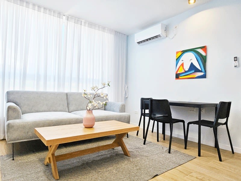 דירה להשכרה 3 חדרים בברוך רם 1 נתניה בעלת שטח 55, שירותים: 1, אמבטיות: 1, כיווני אוויר: צפון, מערב, חניות: 1, קומה: 6, מעליות: 1, כיווני אוויר: צפון, מערב, תוספות:: מיזוג, מרוהט, משופצת, .