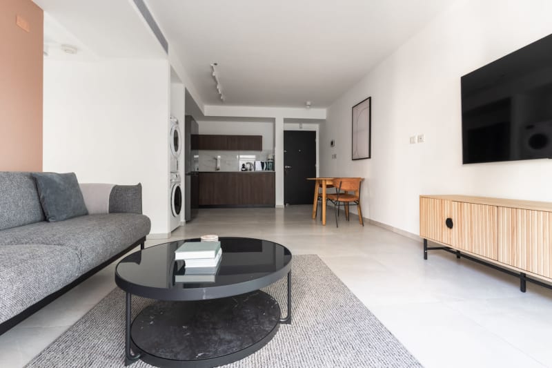 Discover the best of Tel Aviv, with this one bedroom apartment in Tel Aviv. It’ll be easy to simply show up and start living in this elegantly furnished apartment with its fully equipped kitchen, stylish living room, and our dedicated, on-the-ground support. (ID #TLV66) Rates vary depending on the duration of stay, season, and other parameters. For exact pricing and additional pricing components, please visit our website and enter your desired move-in and move-out dates. The rate is applicable when billed upfront; it can be higher if billed in multiple payments. Were you looking for an unfurnished lease? Try Blueground instead and upgrade from unfurnished to furnished living: Furnished at rates comparable to unfurnished No setup or furniture costs - save thousands Move-in ready - save time, just bring your suitcase Designed with you in mind Gorgeous furniture, fully equipped kitchen, smart TV, and a premium wireless speaker are just a few of the amenities you’ll find inside this one bedroom apartment. Ideally located in Tel Aviv, you’ll find a lot to love outside as well. When you’re ready to relax, you’ll be happy to discover every bedroom comes with superior quality mattresses. We handle everything so you can simply show up and start living. This apartment also offers in-apartment laundry. Sleeping arrangements Queen Bed, 63in/160cm Amenities Building amenities unique to this one bedroom apartment include an on-site: Dryer Elevator Washing machine Arrival and ongoing support Full Maintenance and Technical Support / cleaning requests at a click of a button. Other things to note This apartment has flexible lease options, allowing you to book it for one month, a year, or more. This apartment can be booked for short term stays, with the option to extend to one month or longer. The displayed price excludes VAT. Israeli citizens must add 18% VAT, which also applies to reservations without verified tourist status (B2/B3/B4 voucher).