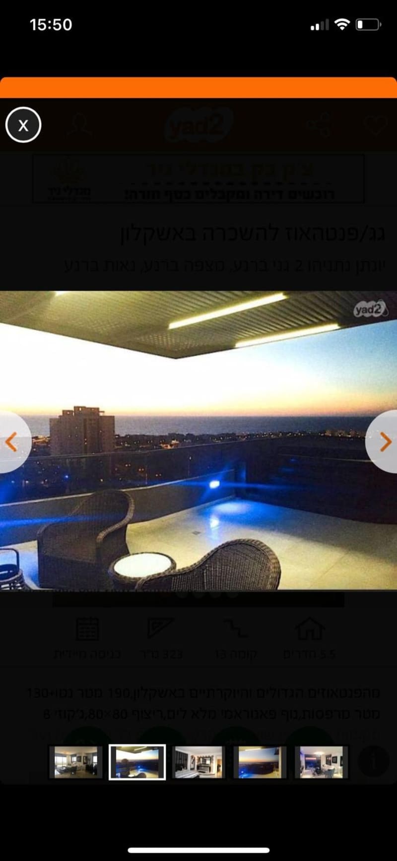 🏰 פנטהאוס יוקרה מפואר להשכרה - שכונת ברנע הצפונית, אשקלון נוף פנורמי מלא לים מהמם! 📐 פרטי הנכס: · סוג הדירה: פנטהאוס יוקרתי · שכונה: צפון/ברנע החדשה · מ"ר בנוי: 200 מ"ר · גודל מרפסת: 130 מ"ר עם 2 מרפסות ופרגולות תלויות · ריצוף: 80×80 · מבט: נוף מלא ופתוח לים 🎁 שירותי יוקרה: · סוויטת הורים ענקית במיוחד - מורכבת מ-2.5 חדרים · מטבח מושקע ברמות הגבוהות ביותר · 2 חניות + 2 מחסנים · עבודות גבס ותאורת LED ייחודית · שואב אבק מרכזי · ג'קוזי יוקרתי · פינוי מהיר - כניסה גמיש! 💵 מחיר: 10500 ₪ 📞 לרכישה ותיאום סיור: יאיר - 0526688810