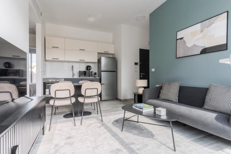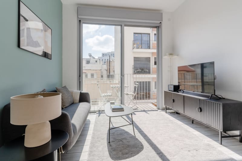 You’ll love this charming Tel Aviv furnished two bedroom apartment with its modern decor, fully equipped kitchen, and spacious living room with great balcony views. Ideally located, you’re close to all the best that Tel Aviv has to offer! (ID #TLV17) Rates vary depending on the duration of stay, season, and other parameters. For exact pricing and additional pricing components, please visit our website and enter your desired move-in and move-out dates. The rate is applicable when billed upfront; it can be higher if billed in multiple payments. Were you looking for an unfurnished lease? Try Blueground instead and upgrade from unfurnished to furnished living: Furnished at rates comparable to unfurnished No setup or furniture costs - save thousands Move-in ready - save time, just bring your suitcase Designed with you in mind Gorgeous furniture, fully equipped kitchen, smart TV, and a premium wireless speaker are just a few of the amenities you’ll find inside this two bedroom apartment. Ideally located in Tel Aviv, you’ll find a lot to love outside as well. When you’re ready to relax, you’ll be happy to discover every bedroom comes with superior quality mattresses. We handle everything so you can simply show up and start living. Sleeping arrangements Queen Bed, 63in/160cm Queen Bed, 63in/160cm Amenities Building amenities unique to this two bedroom apartment include an on-site: Dryer in building Elevator Washing machine in building Pets allowed Arrival and ongoing support Full Maintenance and Technical Support / cleaning requests at a click of a button. Other things to note Pets are welcome, though weight limits and breed restrictions apply and may incur fees. The displayed price excludes VAT. Israeli citizens must add 18% VAT, which also applies to reservations without verified tourist status (B2/B3/B4 voucher).