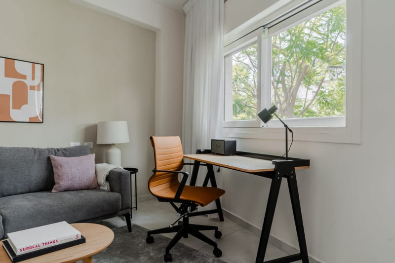 Show up and start living from day one in Tel Aviv with this stylish one bedroom apartment. You’ll love coming home to this thoughtfully furnished, beautifully designed, and fully equipped Nachalat Binyamin home with stunning views over the city. (ID #TLV7) Rates vary depending on the duration of stay, season, and other parameters. For exact pricing and additional pricing components, please visit our website and enter your desired move-in and move-out dates. The rate is applicable when billed upfront; it can be higher if billed in multiple payments. Were you looking for an unfurnished lease? Try Blueground instead and upgrade from unfurnished to furnished living: Furnished at rates comparable to unfurnished No setup or furniture costs - save thousands Move-in ready - save time, just bring your suitcase Designed with you in mind Thoughtfully designed with bespoke finishes, modern furnishings, and a fully equipped kitchen, you’ll enjoy that “I’m home” feeling with this apartment. Whether you’re lounging in your charming living room streaming the latest and greatest entertainment on the smart TV or premium wireless speaker, or getting some well-earned rest on the superior quality mattress with luxury linens, you’ll fall in love with everything this Nachalat Binyamin apartment has to offer. This apartment also offers in-apartment laundry. Sleeping arrangements Queen Bed, 63in/160cm Amenities Building amenities unique to this one bedroom apartment include an on-site: Dryer Elevator Washing machine Pets allowed Arrival and ongoing support Full Maintenance and Technical Support / cleaning requests at a click of a button. Other things to note Pets are welcome, though weight limits and breed restrictions apply and may incur fees. The displayed price excludes VAT. Israeli citizens must add 18% VAT, which also applies to reservations without verified tourist status (B2/B3/B4 voucher).